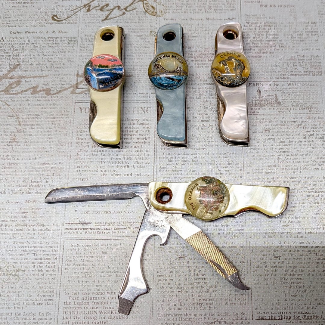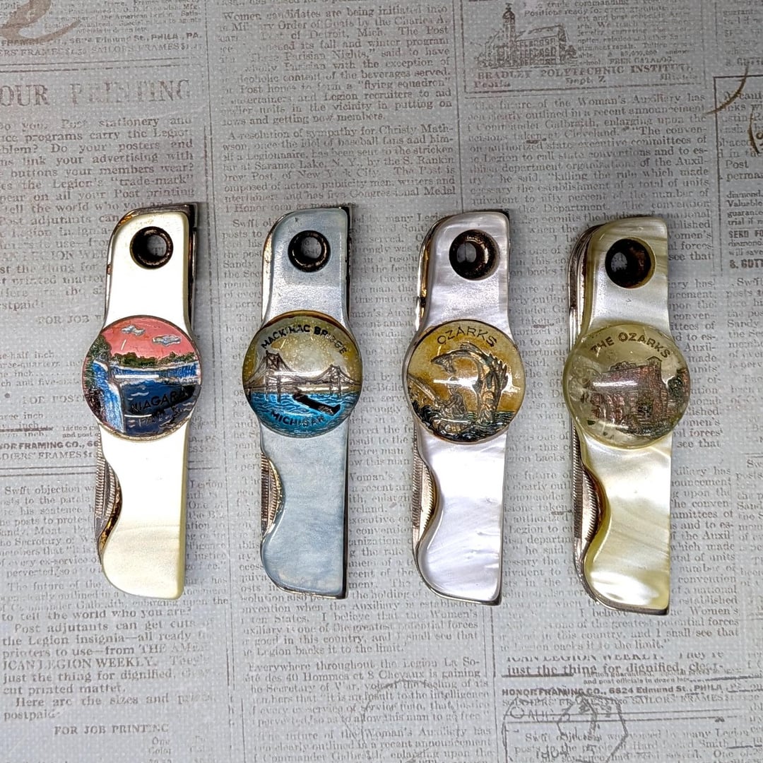 Doing a bit of research recently, having never known anything about these before, it seems Bassett made a bare metal version of this by the millions. Commonly found in drug stores. They had a much less common souvenir line of these with pearl'ish scales and dome-covered prints.