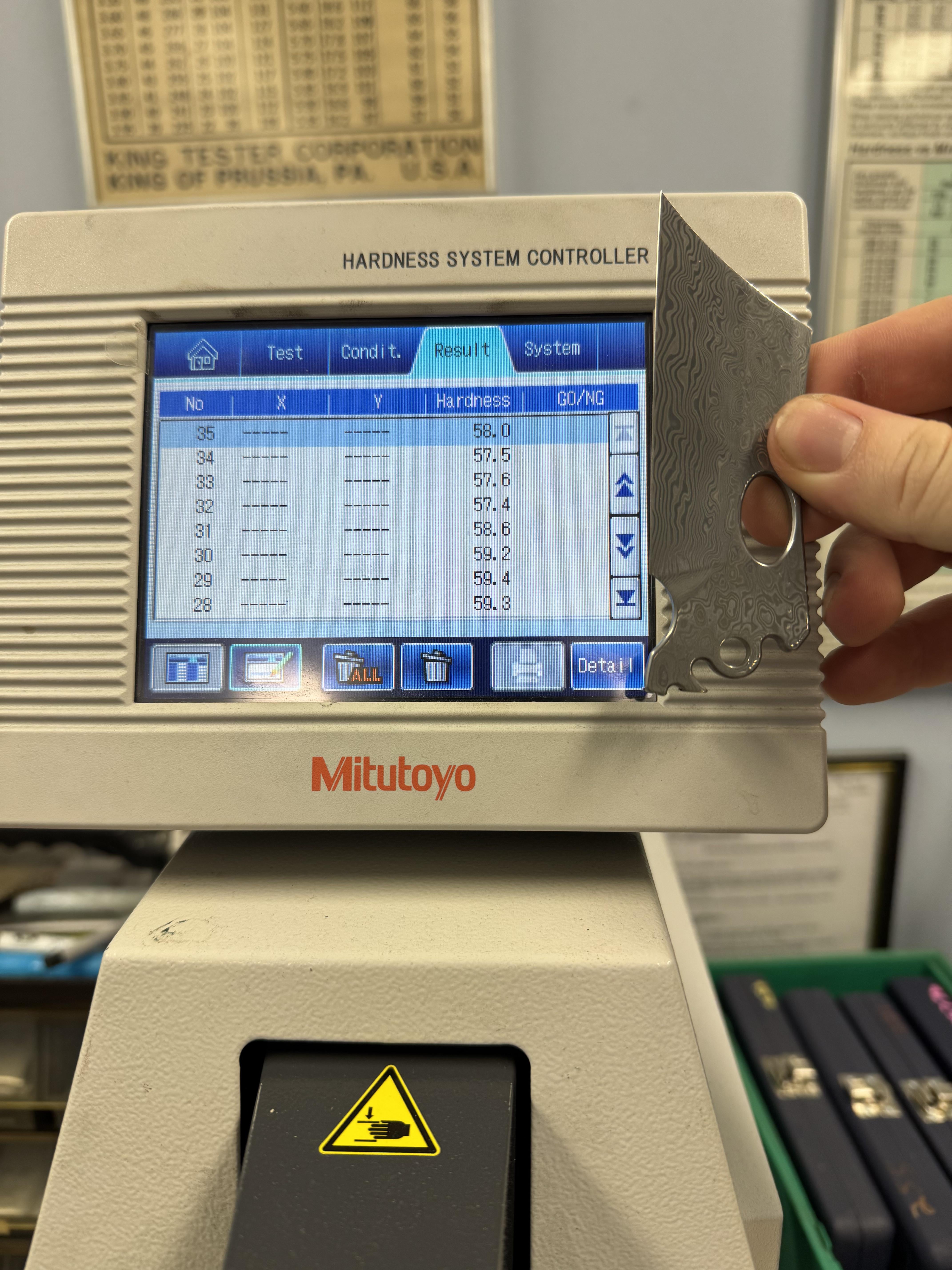 I am once again going to point out the difference between the bottom 4 and top 4 punches. Again, you absolutely cannot test just one side of a blade with Rockwell hardness. This is like the 10th time there’s been a difference of more than half a point. If I see another test ran by someone not doing this, I’m automatically saying their testing is invalid. Hope yall enjoy🤙