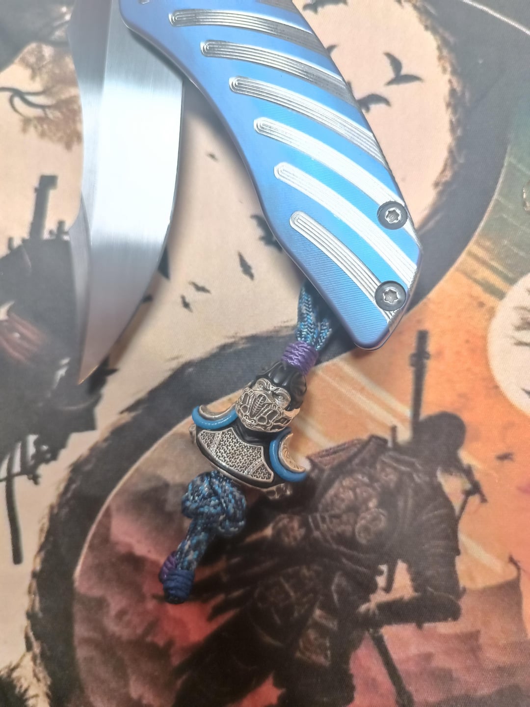 More of a beads showcase, really. As a lanyard fan, beads collecting is second hobby after knives. They mix together ideally (like bread and butter. Or beer and vodka 😀). The ones pictured are Scorpion (on scorpion lock AD-15) and Sub-Zero on Brian Nadeau's Cyclone. Beads created by "Old Caster".