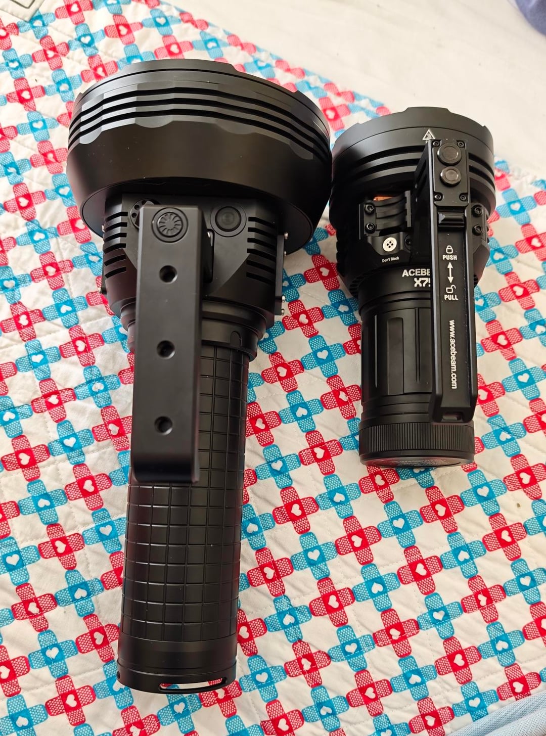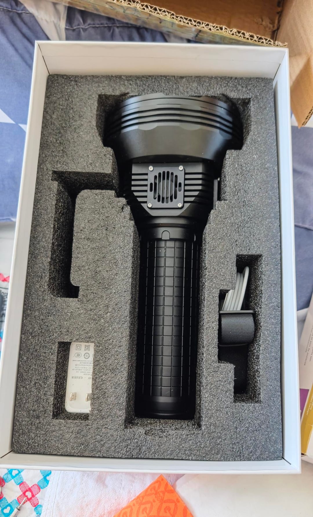 As far as I'm aware this is the 2nd brightest commercially available flashlight after the imalent MS32 right in-between it and the SR32. However it is much cheaper. I paid 385USD for my unit including shipping which was a large amount of it. Before shipping this is a ~330$ light which is an absolute bargain considering the specs it claims. It has 65w fast charging via USB-C and came with a 65w fast charger which alone is worth a good $25-30. The light has active cooling consisting of 3 fans. You can see the size of it compared to the acebeam X75 inpic # 6, 7, 8.