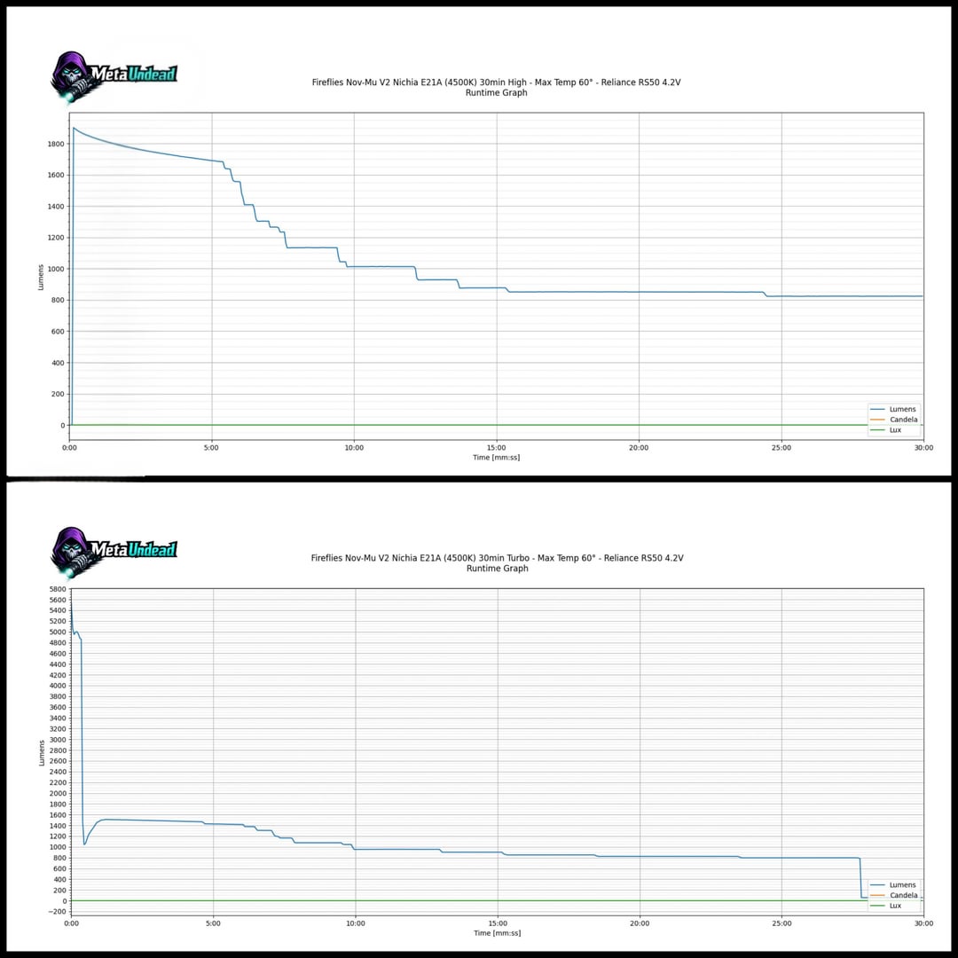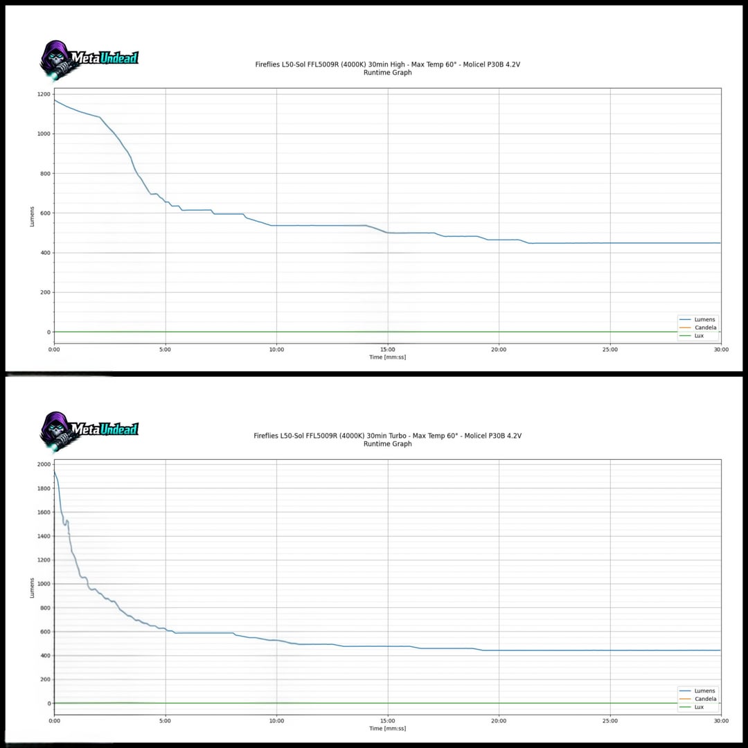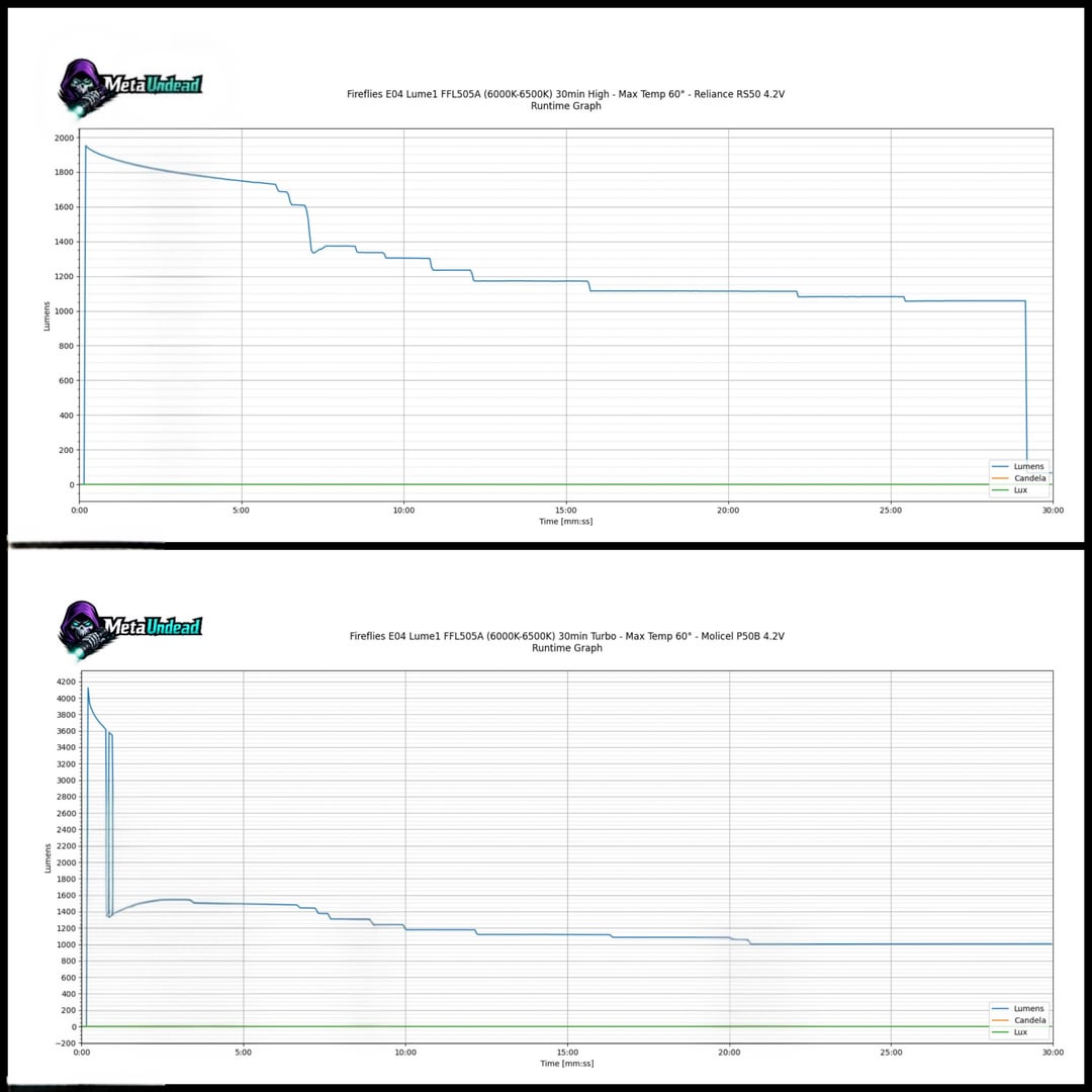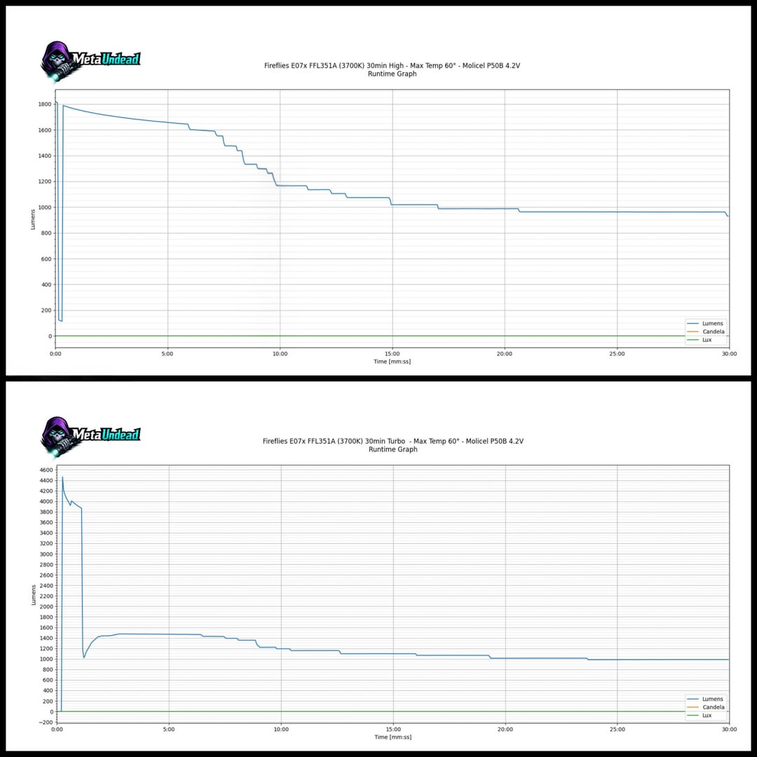 The standout performer has to be my Fireflies E90 (FFL909A 5000K, OP reflector). While the turbo is short-lived, its sustained output is around 2000 lumens, which blew my expectations out of the water.