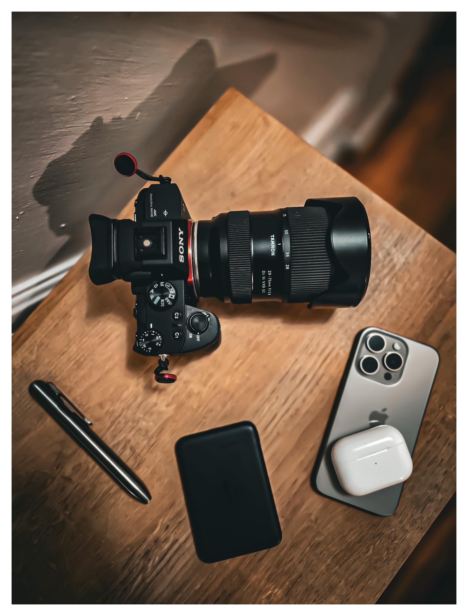 In EDC Photography EDC January 22, 2026 My EDC as a photographer!•Sony a7iii w/ Tamron 28-75mm f2.8•Marksmith Ti Sharpie•Anker MagSafe Charger•AirPod Pro 3s• IPhone 15 Pro 256gb ( Natural Titanium)by rHallowww EDC Prev Post KOD loving my carbon fiber babies! January 22, 2026 Next Post Knafs Scales and Lanyard January 22, 2026 Related Posts Literal Pocket Dump! System Manager/Fulltime Student March 2, 2026 New little rachet with mint tin for but storage March 2, 2026 Visited a museum March 2, 2026 1 Comment AutoModerator 1 month ago Thank you for posting to r/EDC! Include a detailed item list (make/model) within **1 hour** of submission. Lists can go in the title, a comment, or the image. Posts without lists will be removed. If you have already provided a list, not further action is needed, thanks | [FAQ](https://www.reddit.com/r/EDC/wiki/faq)*I am a bot, and this action was performed automatically. Please [contact the moderators of this subreddit](/message/compose/?to=/r/EDC) if you have any questions or concerns.*Write A CommentYou must be logged in to post a comment.