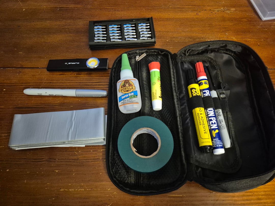 Hi! I carry way too much stuff at any given time and have been called a walking junk drawer, and my work bag referred to as a bag of holding. My pockets are gtg on any given day for most things, but I also have 3 pouches that go into my bag any time Im out of the house for long. Please lmk any notes or things I should change/add/remove!
