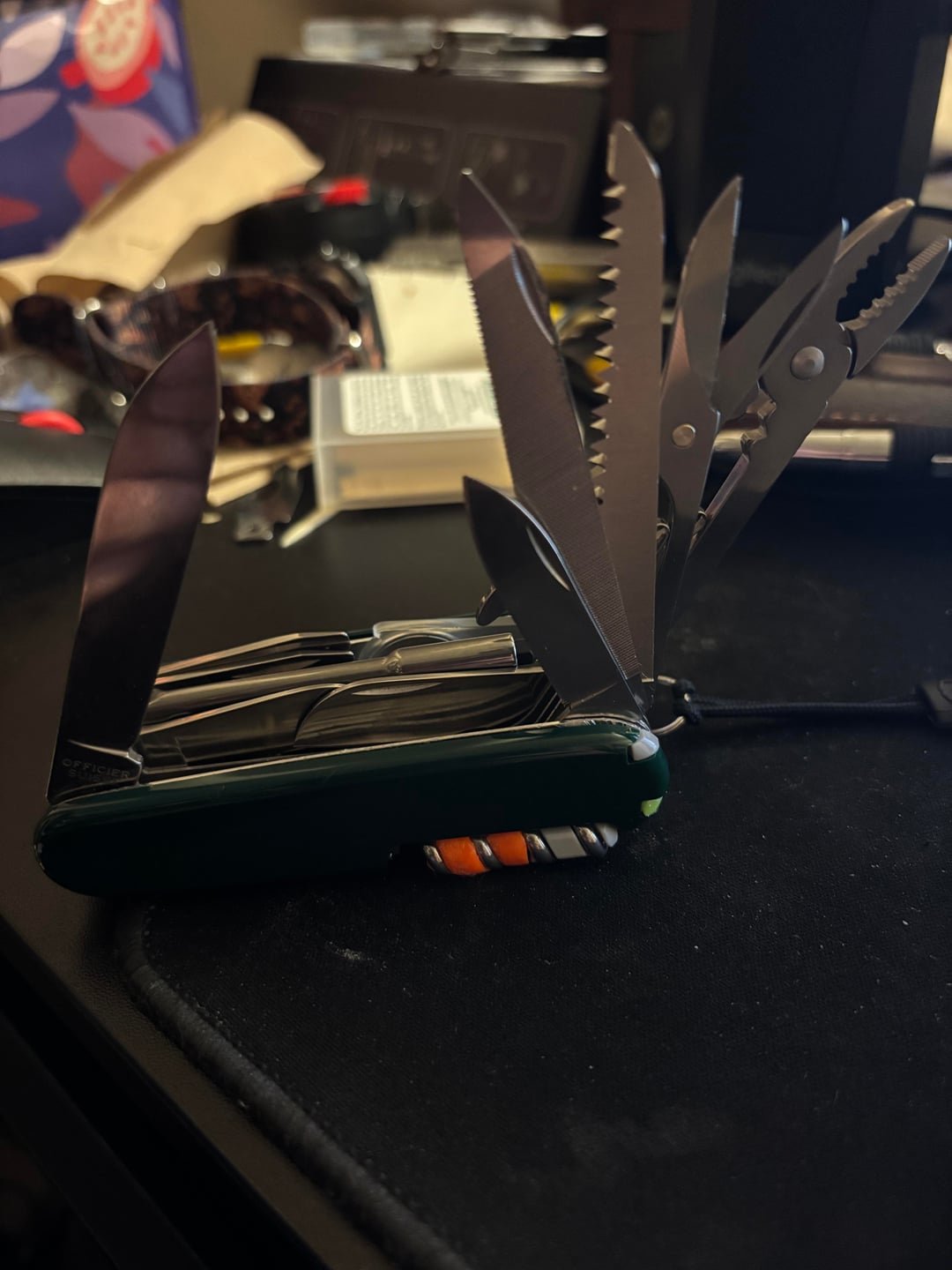 I think I need to take it apart and redo it. There’s some weird warping that is causing the layer with the bottle opener and awl to be very difficult. You might be able to notice that one side of the knife appears to twist…