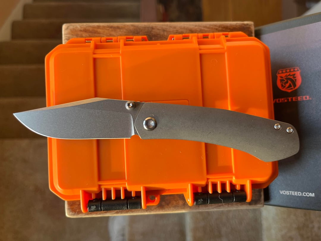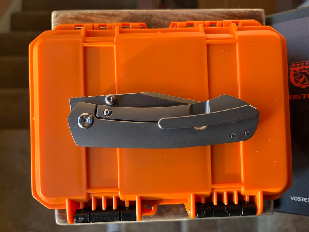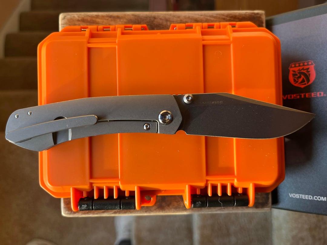 S35VN blade in gray titanium handle. Ray Laconico design. Snappy action.