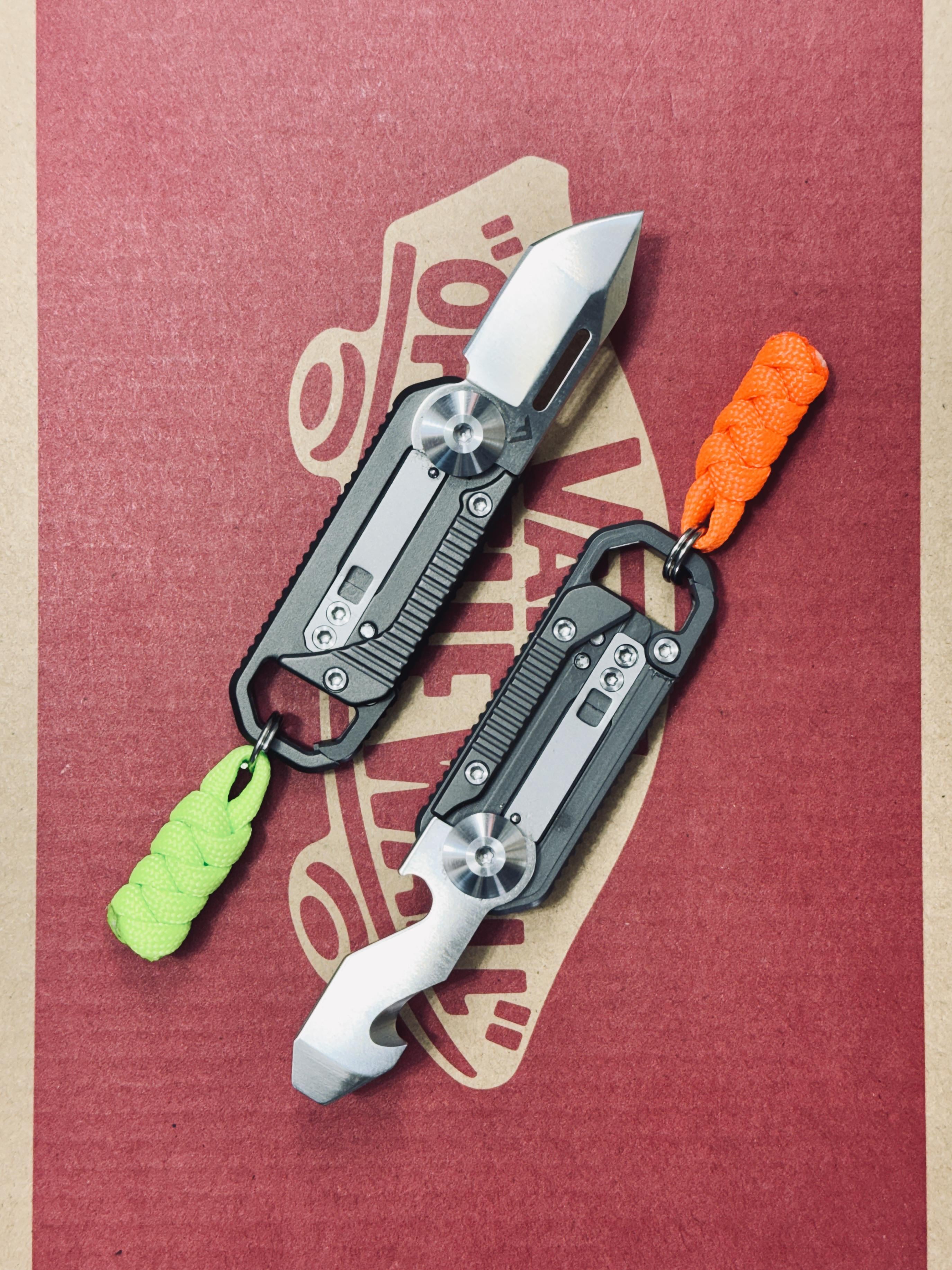 ⚈ FLISSA 6-in-1 EDC Keychain Multitool Mini-Knife in Aluminum (orange lanyard)