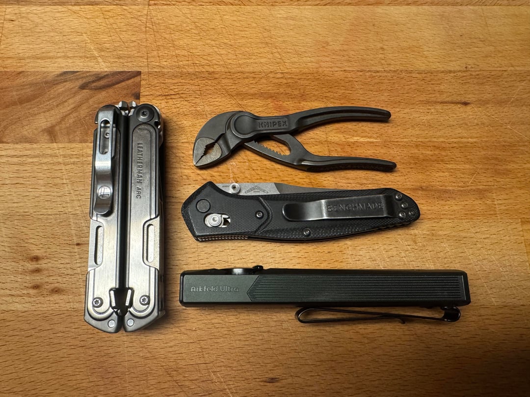 The most generic setup in the EDC game, probably. If it ain’t broke don’t fix it. Leatherman Arc (new), Knipex cobra XS, benchmade osborne, olight arkfeld ultra