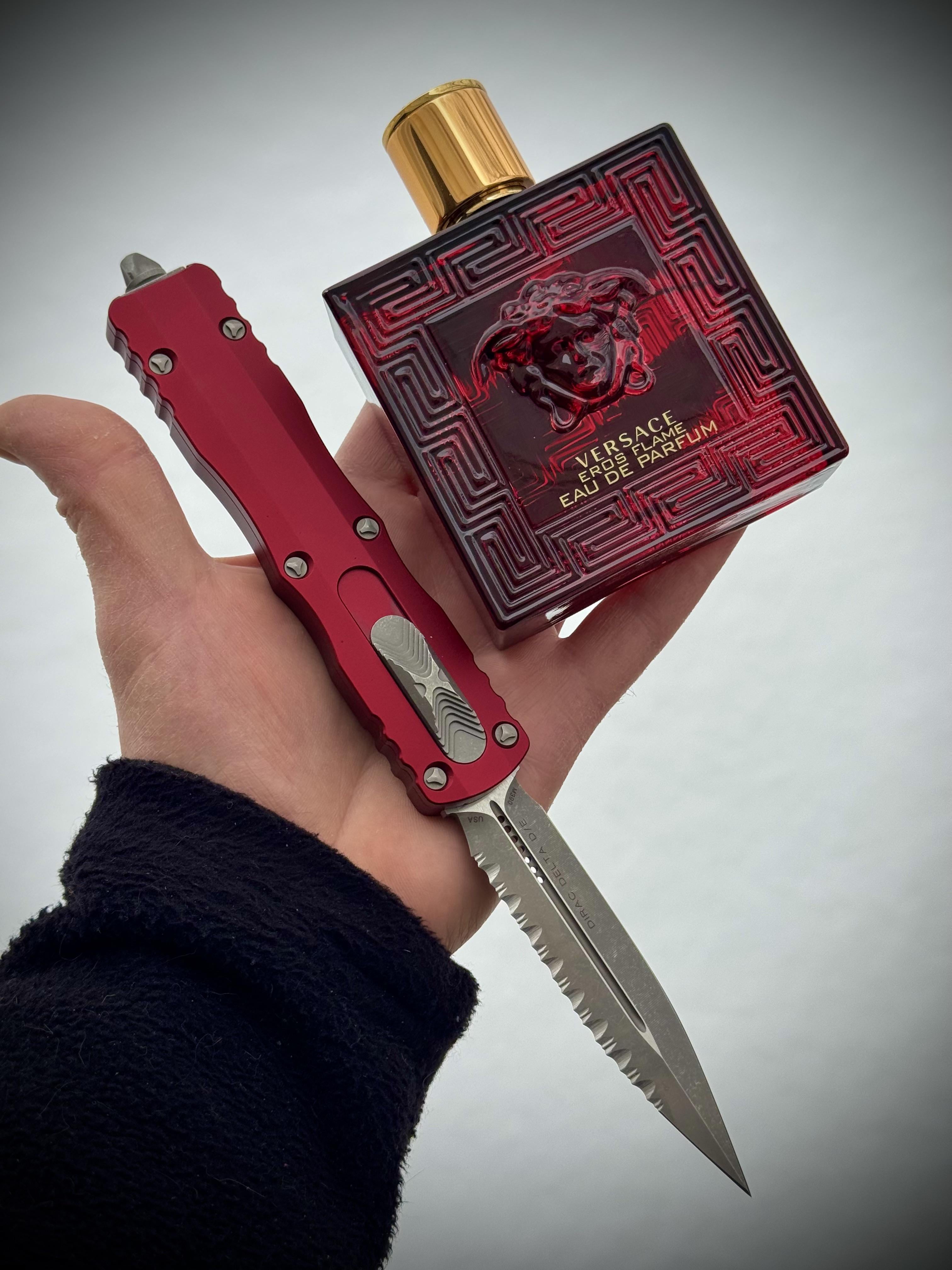 Microtech Dirac Delta and Versace Eros Flames 🔥