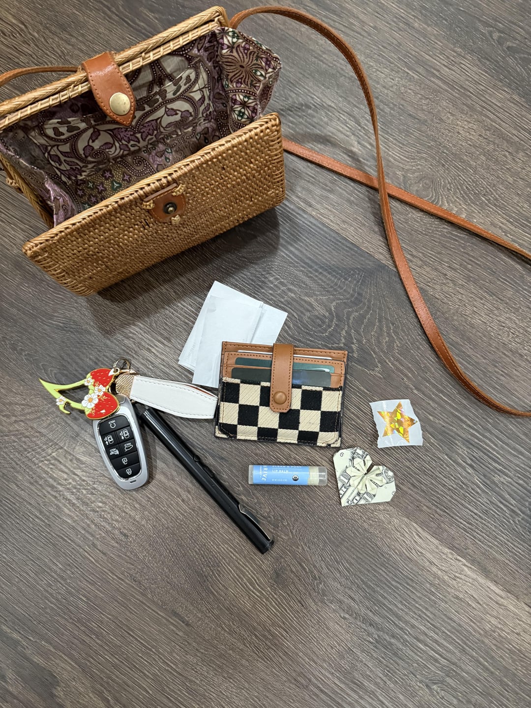 Usually more receipts and I have another set of keys with at least 15 keys on it.