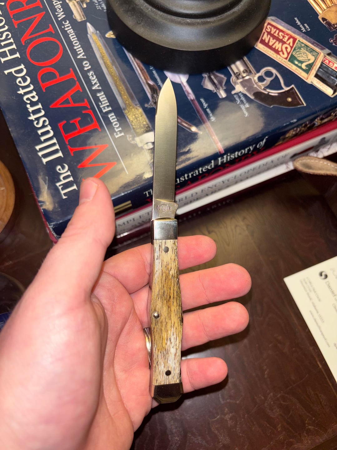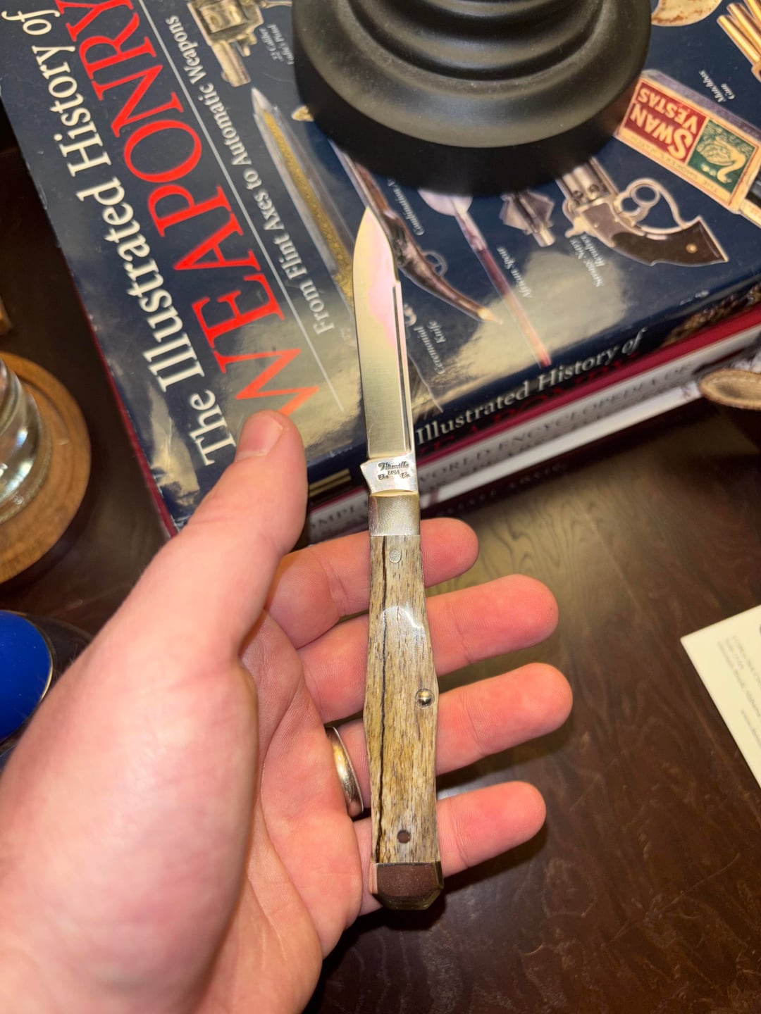 It’s been probably 10 years now since I would say I started collecting pocket knives and I haven’t taken a family photo in a while. As time went on I bought less and less knives and spent more time searching for the right one. I’ve definitely gotten picky. I just picked up this Titusville cutlery lexingtonian with a cow bone handle and man is it nice.