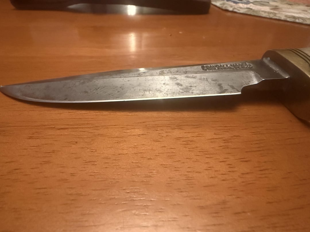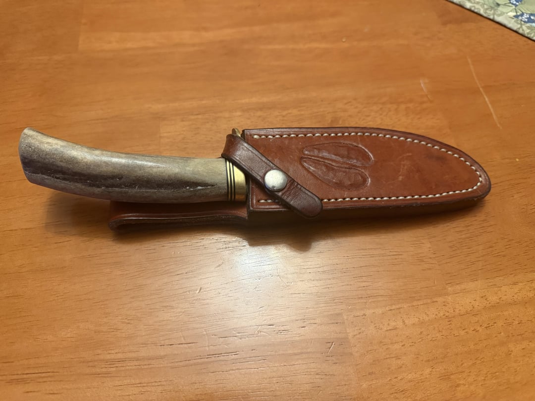 Just wanted to share my Dads knife that I was admiring from a recent hunting trip with him in Northern Maine. Custom LH Barrenti sheath, sharpened many times. Several moose, 4 bear and 20 or so whitetails. Used hard but not abused! Crazy to think how much meat this one knife processed for the family. A fantastic tool.