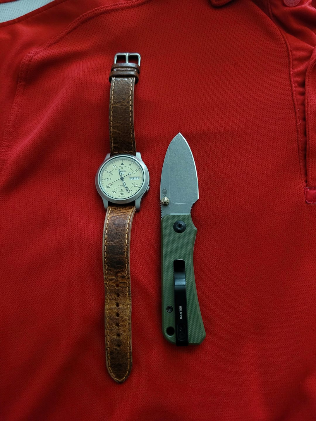 In EDC Tuesday’s duo. . . Seiko SNK803 AND Civivi Baby Banter. January 27, 2026 Tuesday’s duo. . . Seiko SNK803 AND Civivi Baby Banter. by davect01 EDC Prev Post Offspring January 27, 2026 Next Post Boss’s daily driver. From 1998 January 27, 2026 Related Posts Literal Pocket Dump! System Manager/Fulltime Student March 2, 2026 New little rachet with mint tin for but storage March 2, 2026 Visited a museum March 2, 2026 1 Comment AutoModerator 1 month ago Thank you for posting to r/EDC! Include a detailed item list (make/model) within **1 hour** of submission. Lists can go in the title, a comment, or the image. Posts without lists will be removed. If you have already provided a list, not further action is needed, thanks | [FAQ](https://www.reddit.com/r/EDC/wiki/faq)*I am a bot, and this action was performed automatically. Please [contact the moderators of this subreddit](/message/compose/?to=/r/EDC) if you have any questions or concerns.*Write A CommentYou must be logged in to post a comment.