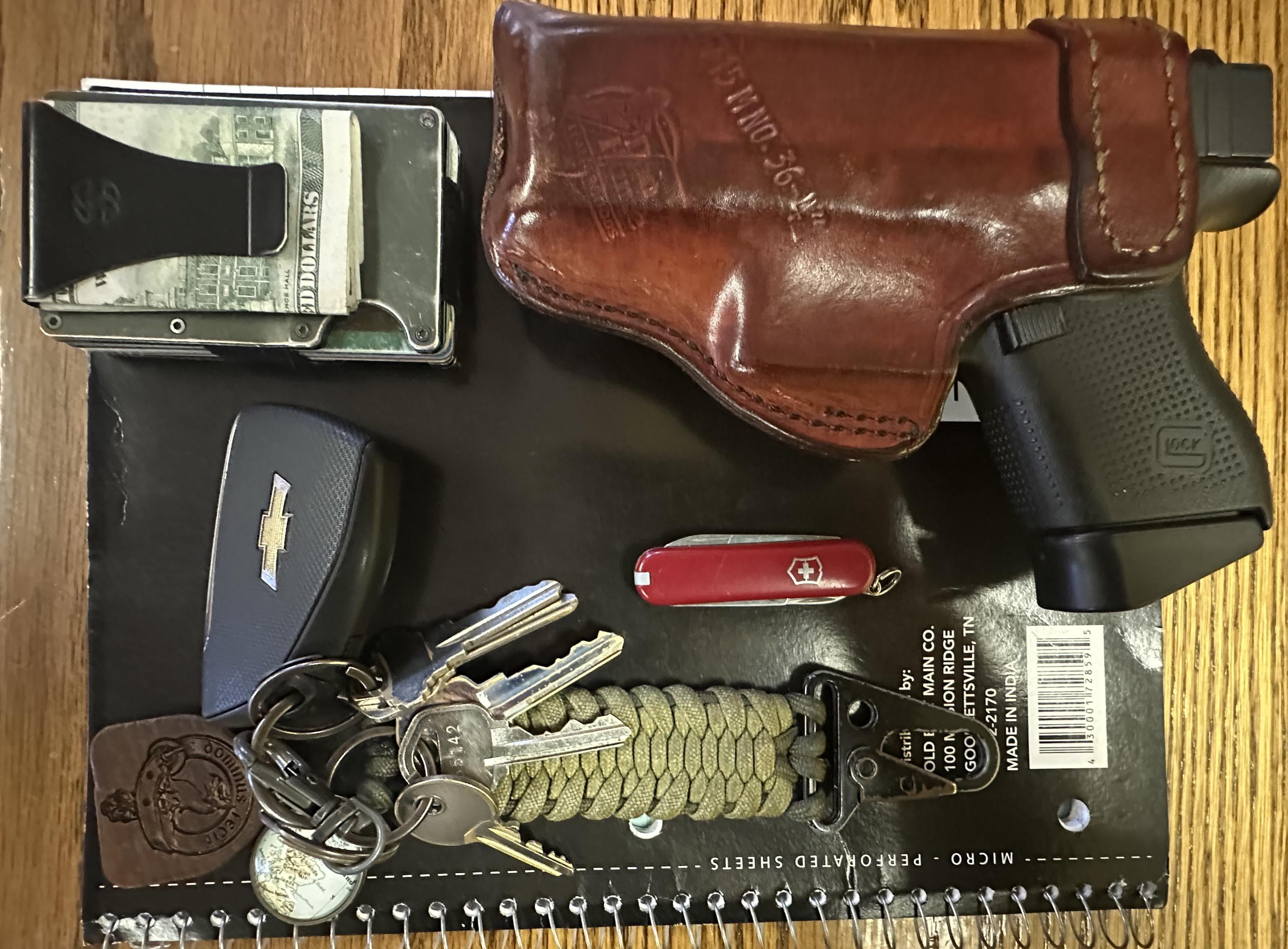 In EDC Keepin it simple. Have a good one yall! January 27, 2026 Keepin it simple. Have a good one yall! by Dirtdawg93 EDC Prev Post Ti Tuesday January 27, 2026 Next Post NKD! Kershaw Iridium M390 January 27, 2026 Related Posts work stuff March 1, 2026 One of the load outs March 1, 2026 Question about my AKC. Is this real Damascus? Is there usually a line going down the middle of blade’s spine? This is my first Damascus knife 🤷♂️ March 1, 2026 3 Comments AutoModerator 1 month ago Thank you for posting to r/EDC! Include a detailed item list (make/model) within **1 hour** of submission. Lists can go in the title, a comment, or the image. Posts without lists will be removed. If you have already provided a list, not further action is needed, thanks | [FAQ](https://www.reddit.com/r/EDC/wiki/faq)*I am a bot, and this action was performed automatically. Please [contact the moderators of this subreddit](/message/compose/?to=/r/EDC) if you have any questions or concerns.* Alecazam32 1 month ago Nice load out! What kind of holster are you carrying? NFAGhostCheese 1 month ago 2015 pistol1915 holsterWrite A CommentYou must be logged in to post a comment.