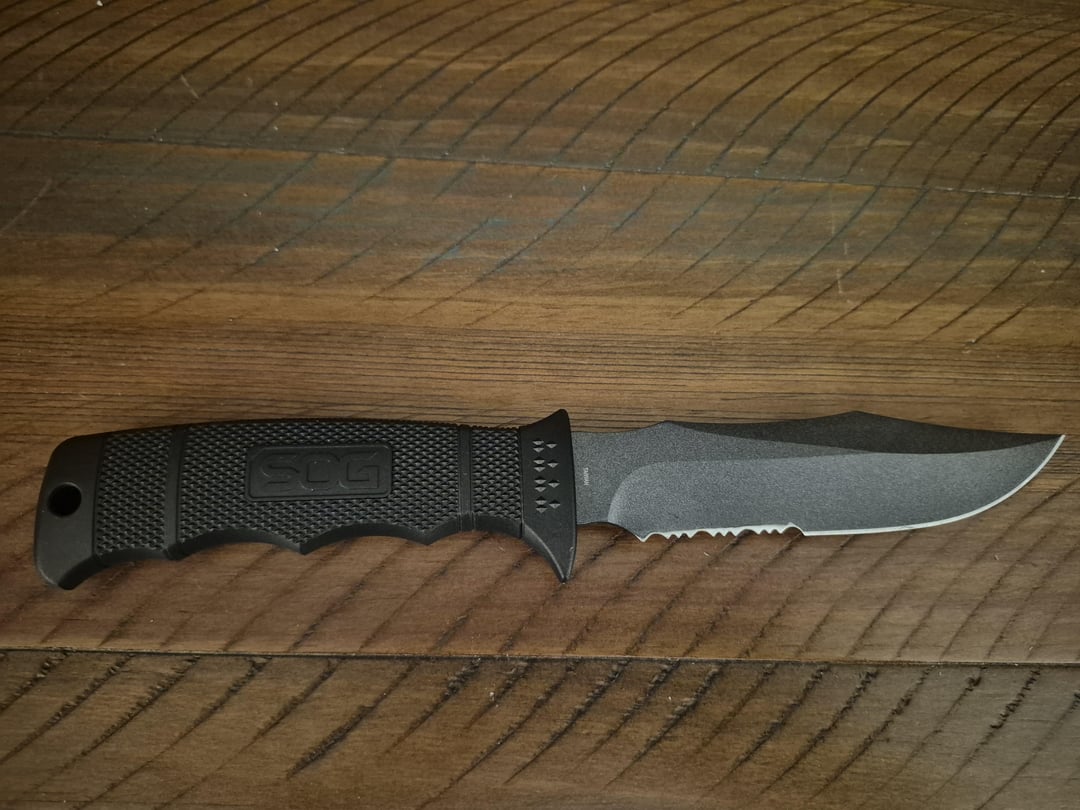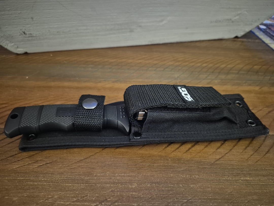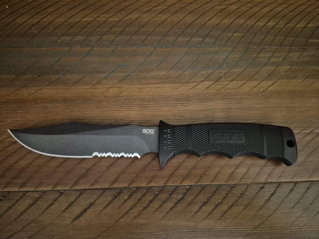The SOG Seal Pup isn't my normal style of knife, but I felt the need to have one at only $30. It's a good size like the Ka-Bar Short. The handle is more of an oblong shape instead of round, like I was expecting. It's surprisingly comfortable to hold. I keep a Leatherman Rebar in the pouch on the sheath. I should get a SOG multi tool to match. The Seal Pup reminds me of the Rambo knives from when I was a kid.