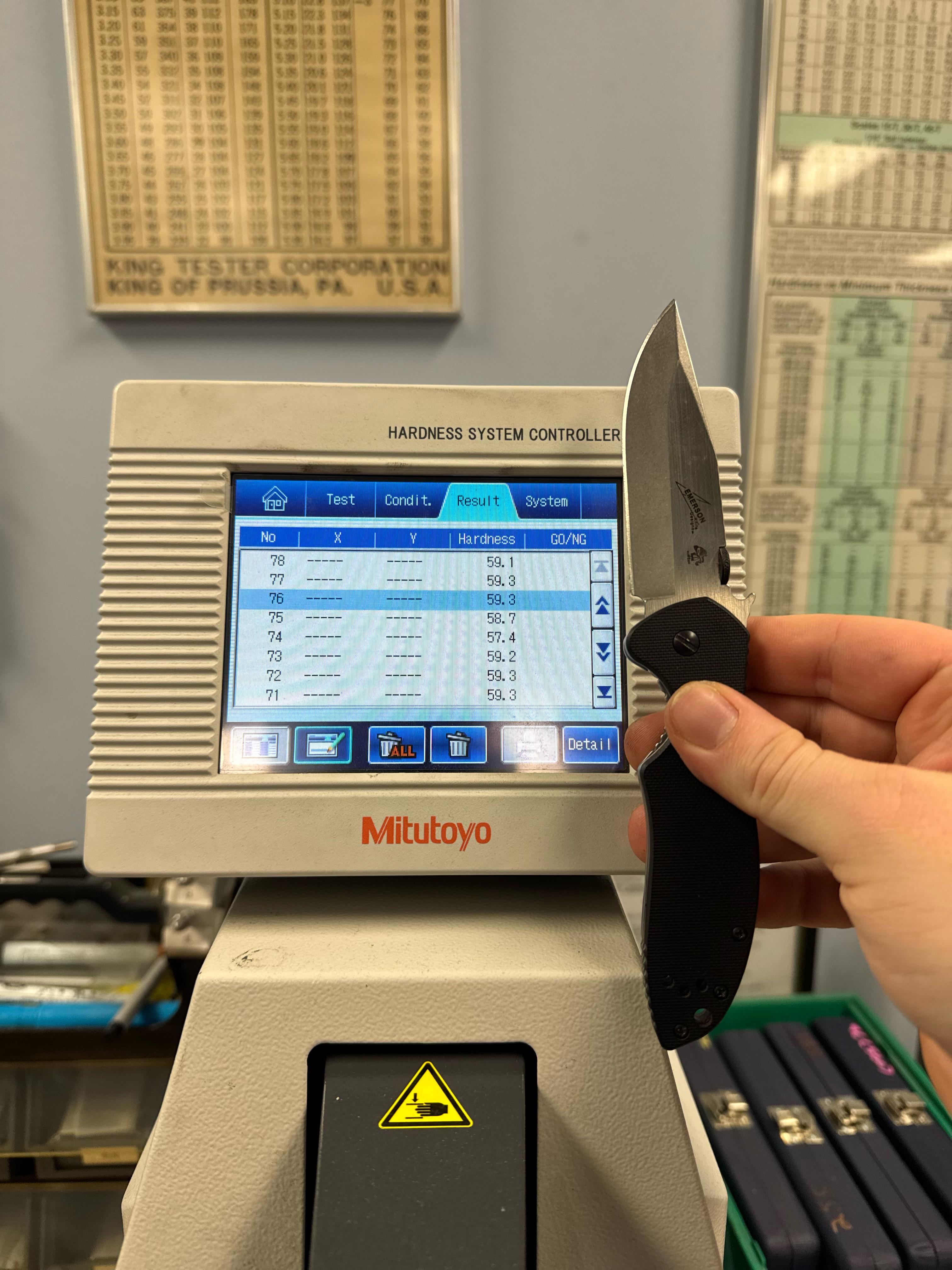 In KNIVES Kershaw Emerson CQC-6K D2 Hardness Results. 59.1 HRC. January 28, 2026 Verified on a 59.8 HRC Verification Block. Note: this blade was burnt(from the factory) towards the “tang”. Could possibly effect results.by 679696 KnifeKnife ClubKnives Prev Post Holy hell. Burnt plastic January 28, 2026 Next Post M/32/jeweler January 28, 2026 Related Posts My two keychain knives February 1, 2026 Before and after February 1, 2026 Love some old school Microtech February 1, 2026Write A CommentYou must be logged in to post a comment.