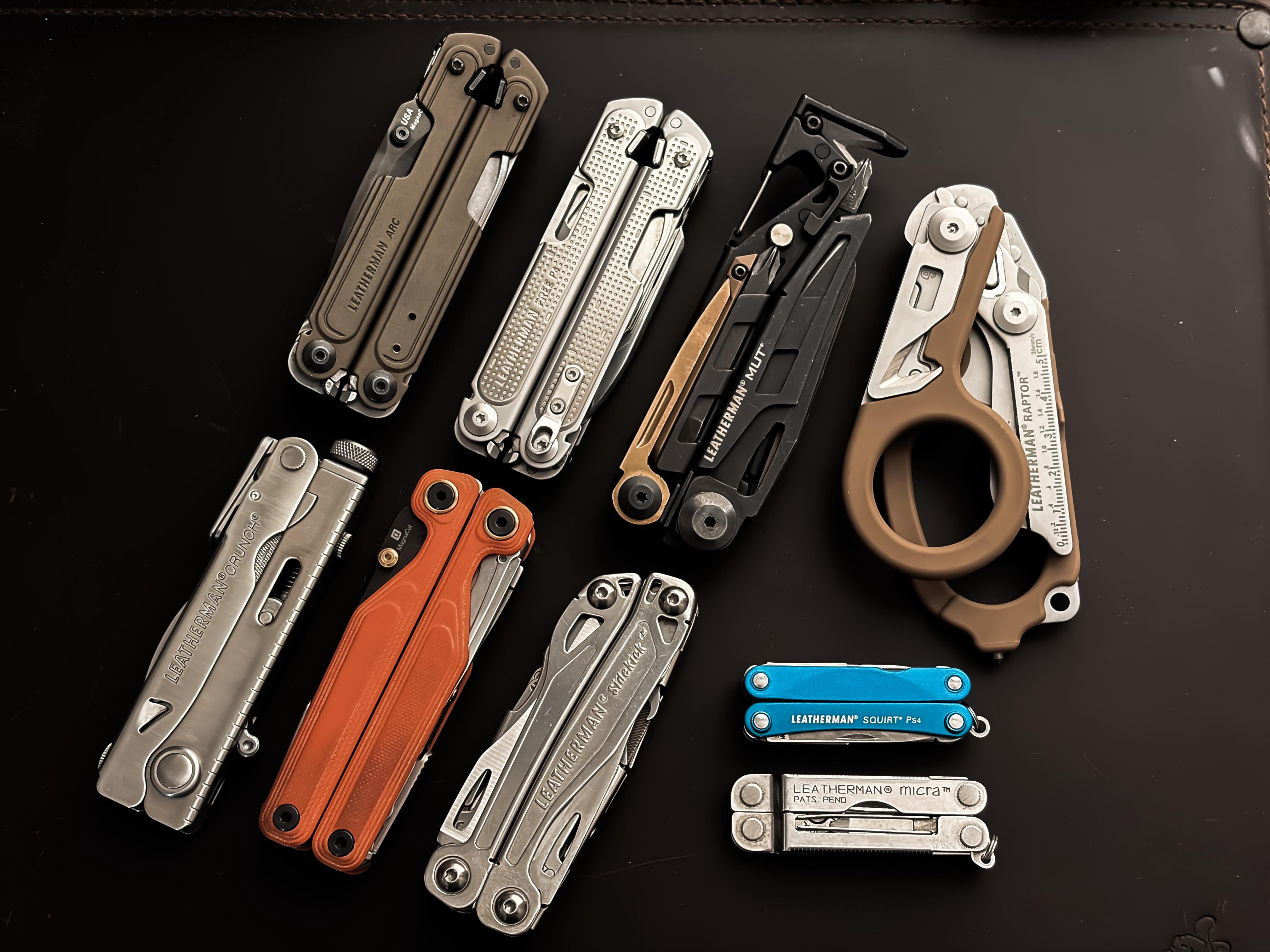 Arc Talos— Crunch— Free P4– Alpha Wave—MUT— Sidekick— Raptor— Squirt— Micra— Skeletool Carbon Fiber (not pictured)