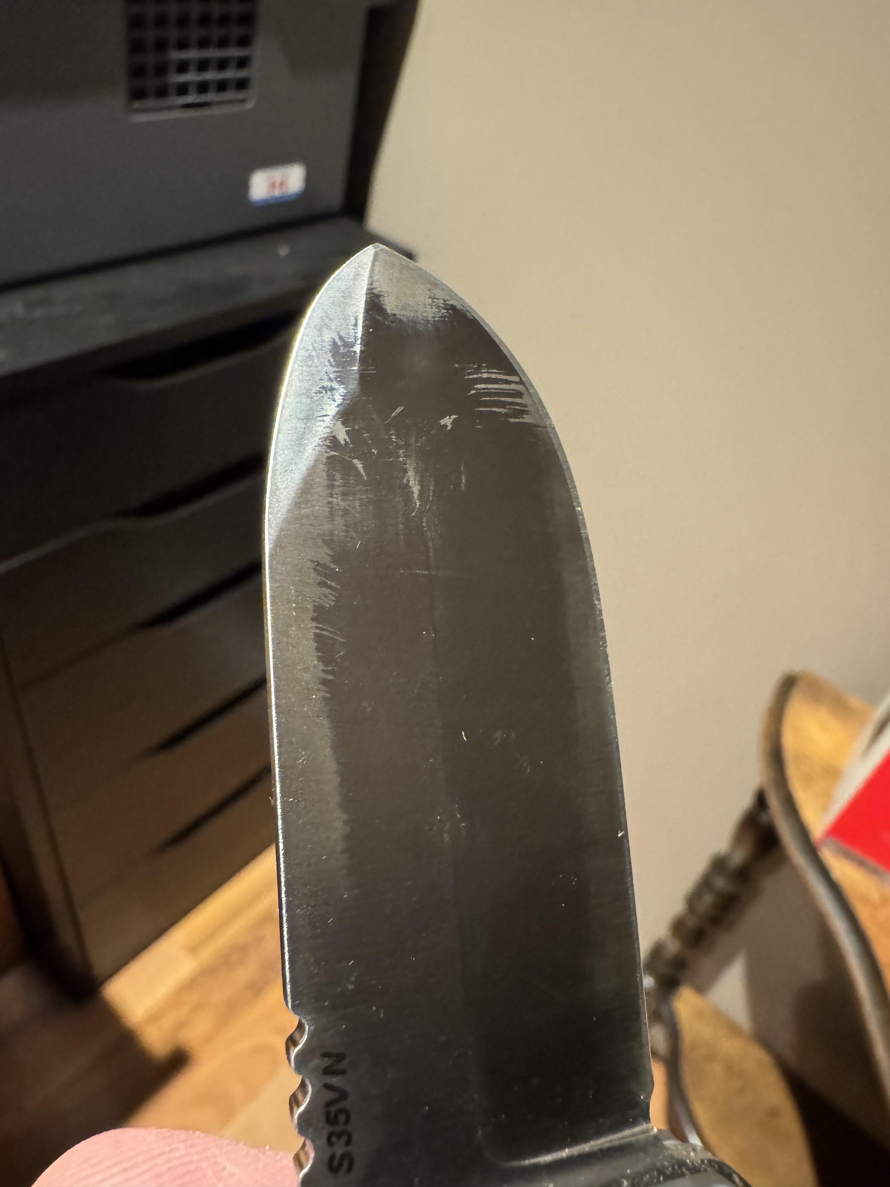 In KNIVES What is this discolouration and are there ways to remove? January 29, 2026 What is this discolouration and are there ways to remove? by Twitchy15 KnifeKnives Prev Post CJRB CENTROS January 29, 2026 Next Post Euro Winter EDC – No Firearms (Sadly) January 29, 2026 Related Posts Brand New Blackwater URSA 6, not a big deal for any sane person but my holy grail April 25, 2026 Collection Complete April 25, 2026 Size Comparison XM-18 vs Jurassic April 25, 2026 4 Comments callmestinkingwind 3 months ago i don’t understand what i’m looking at here its_a_birb 3 months ago I don’t think they know the blade is coated TheWitness37 3 months ago What specific model knife is this and where did you buy it? It looks like the maker coated the blade but unsure who coats “S35VN”? Sudzy1225 3 months ago The blade has a coating. The “discoloration” is the coating wearing away from use. The only way to “remove” the discoloration is to remove the coating. To remove coating, I use Citristrip, usually in a plastic bag overnight. If you want it to be “back to new”…you can’t. It’s wear from use. Write A CommentYou must be logged in to post a comment.