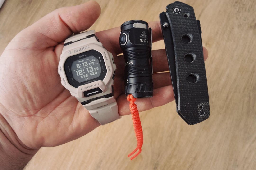 I work from home, so 90% of my “outside world” time is walking my corgi. This is what I realistically carry day to day:
