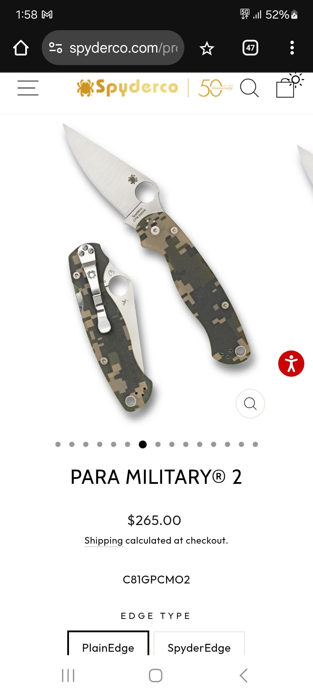 Nope. That’s a hundred dollar price increase since 2020. They weren’t even worth the 2020 prices honestly. I have 5 Spyderco knives,none with fancy steel ,I like them but they are mid in quality with QC issues not to mention they are still mid 2000’s manufacturing. They all need scales and clips and ball cages, etc. to truly shine,which makes them ridiculously expensive in the end. Sorry Spyderco you joined Benchmade in the knives I will no longer even consider buying.