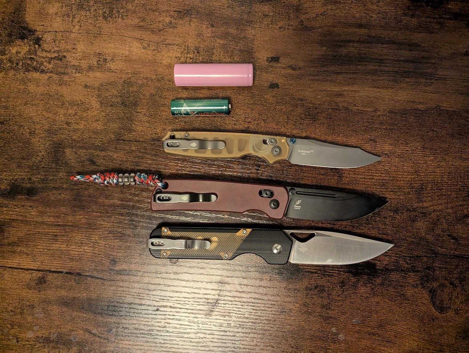 If you've been eyeing the new Pokiman from Kizer here's a size comparison with an 18650 battery, an AA, and the Escort and Militaw folder also from Kizer. I was surprised how slight the Pokiman is, definitely more of a "gentleman's knife" compared to my other folders.