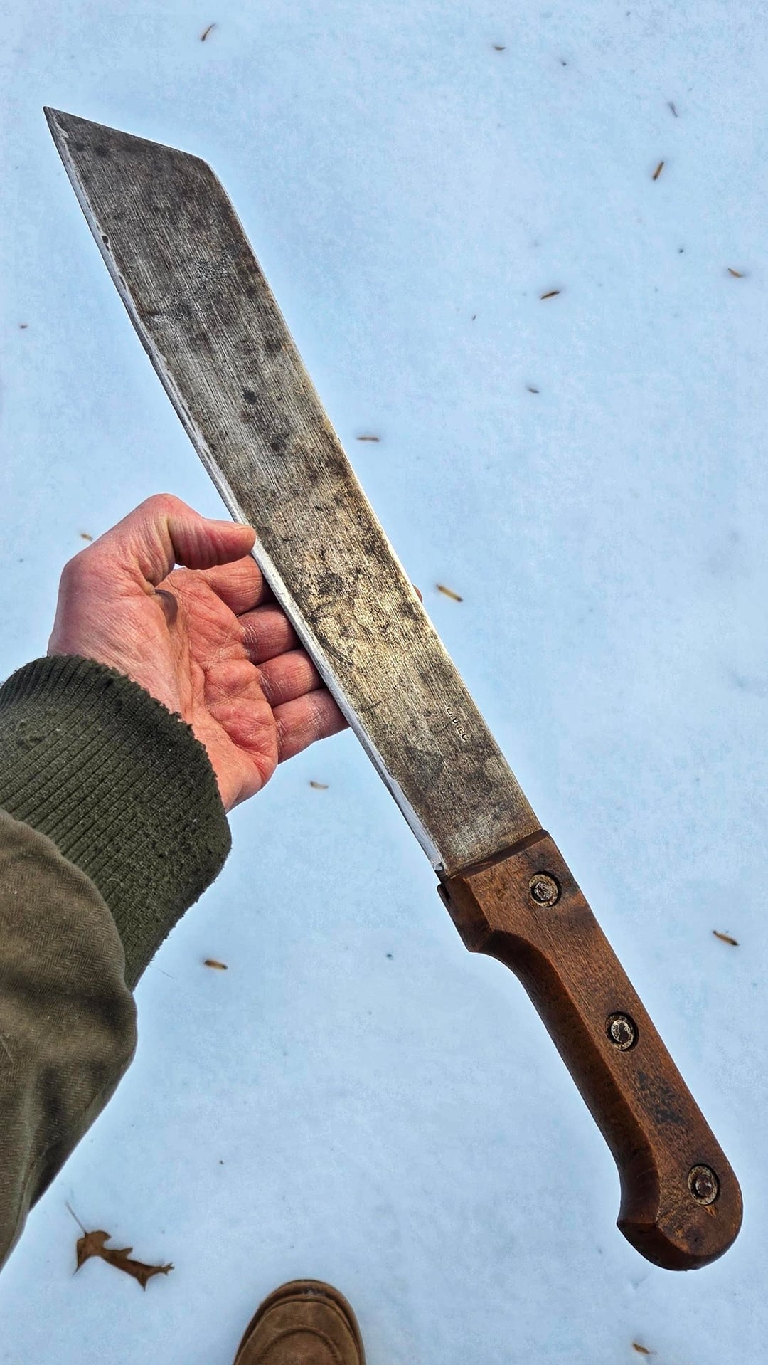 I had this old machete that my FIL gave me years ago just kicking around the shop. Basic wooden handle and what I thought was maybe a leaf spring blade, U.S. made, Idk. Looks basic, cheap. Well dang…google searched.. I never knew it was a relic and feel dumb for sharpening it…lol.