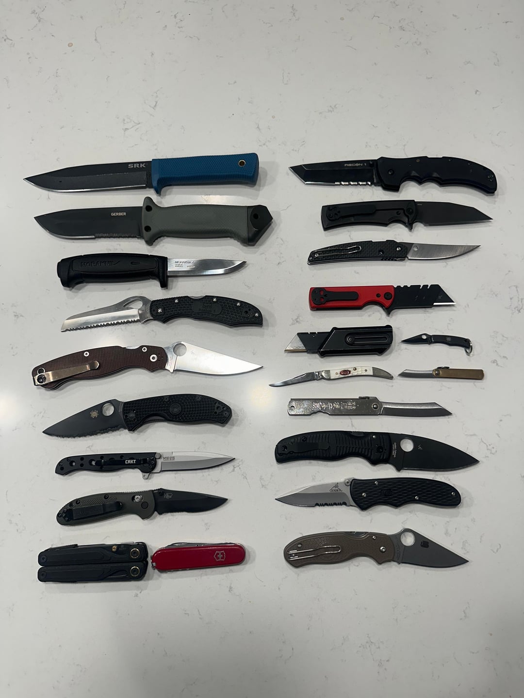 Not pictured i have another morakniv 511 in orange, a gerber eab, gerber diesel multitool, victorinox 2025 inox pioneer x, 2026 inox classic sd, and a milwaukee fastback utility knife.