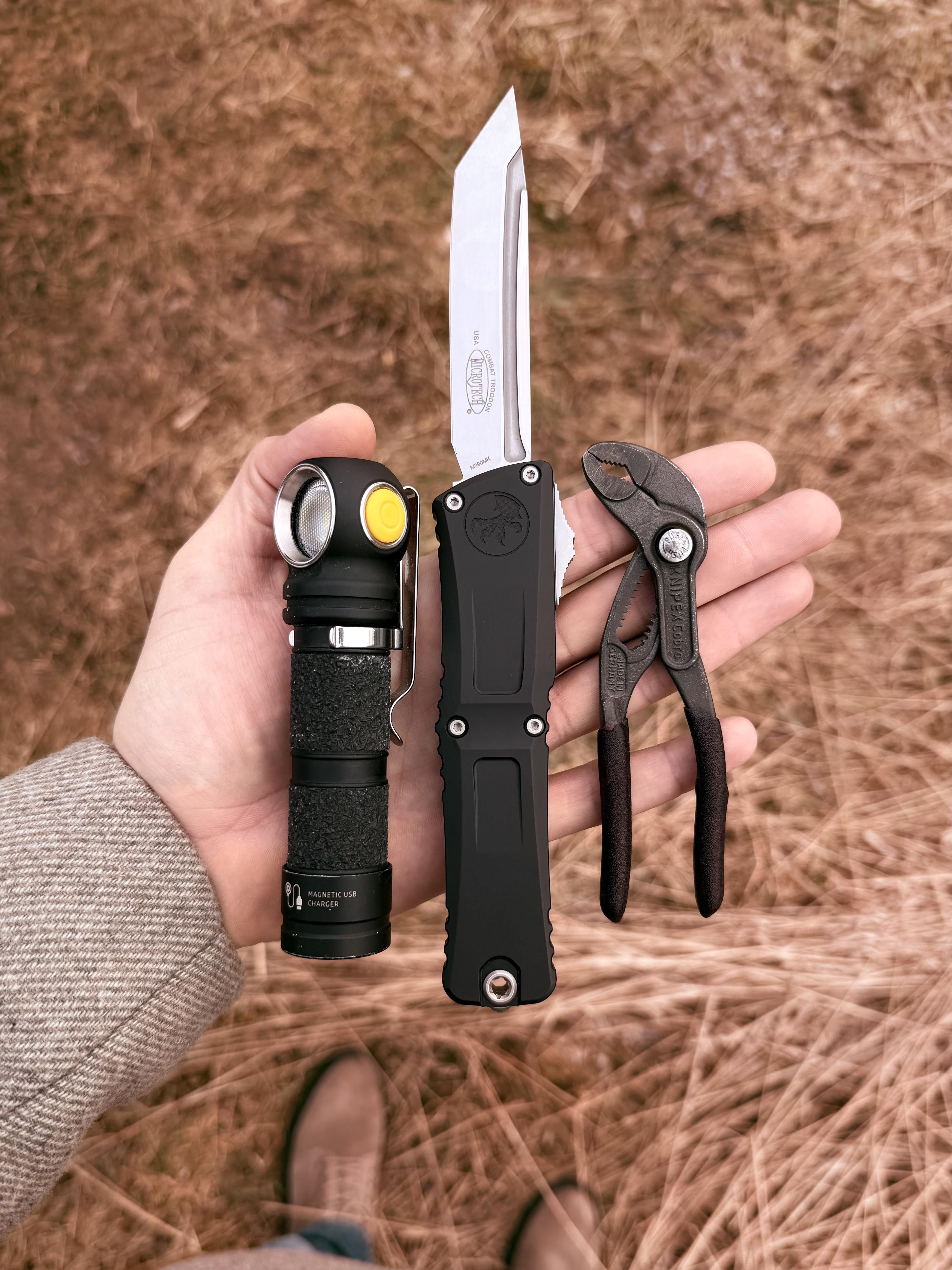 Armytek Wizard C2 pro max, Microtech Combat Troodon, Knipex Cobra 125