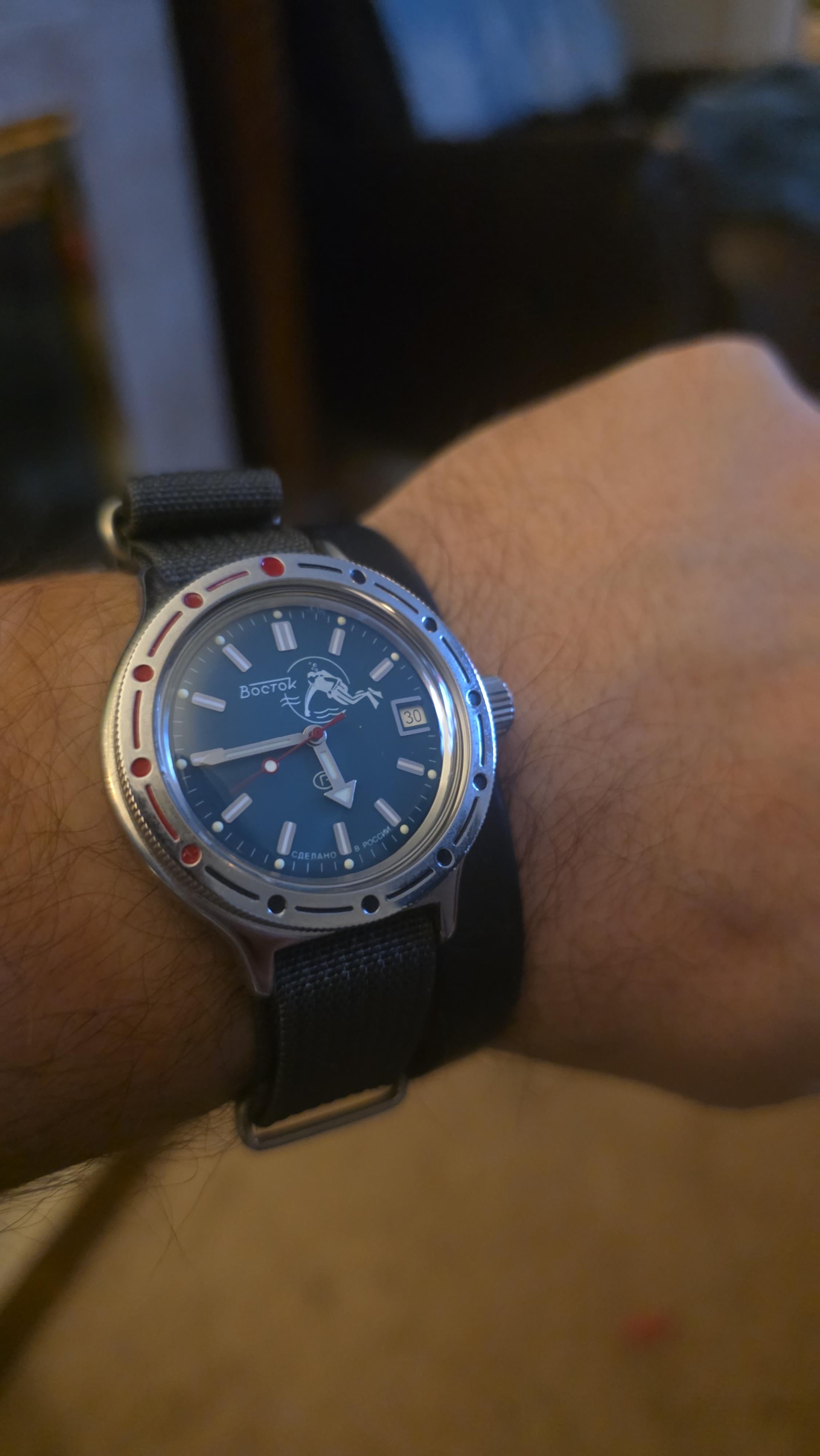 Going through my collection and came across my Vostok Scuba dude. Threw a nato on it and it won't leave my wrist.