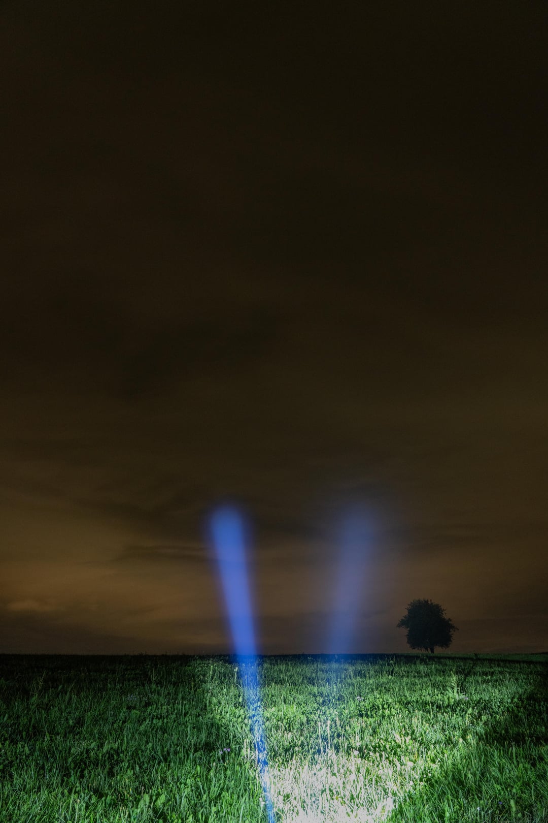 Thanks for the help for getting my Convoy Z1 (and the correct LED) here are some independence day-like shots. Second photo is with an Armytek Predator. I am quite pleased with my purchase but a bit bummed out because it is so focused, that it does spill so little, that i have to do such long exposures. These are 30 sec for just the beam, i wanted to mount it on a car and do dragged lines on the horizon with it.