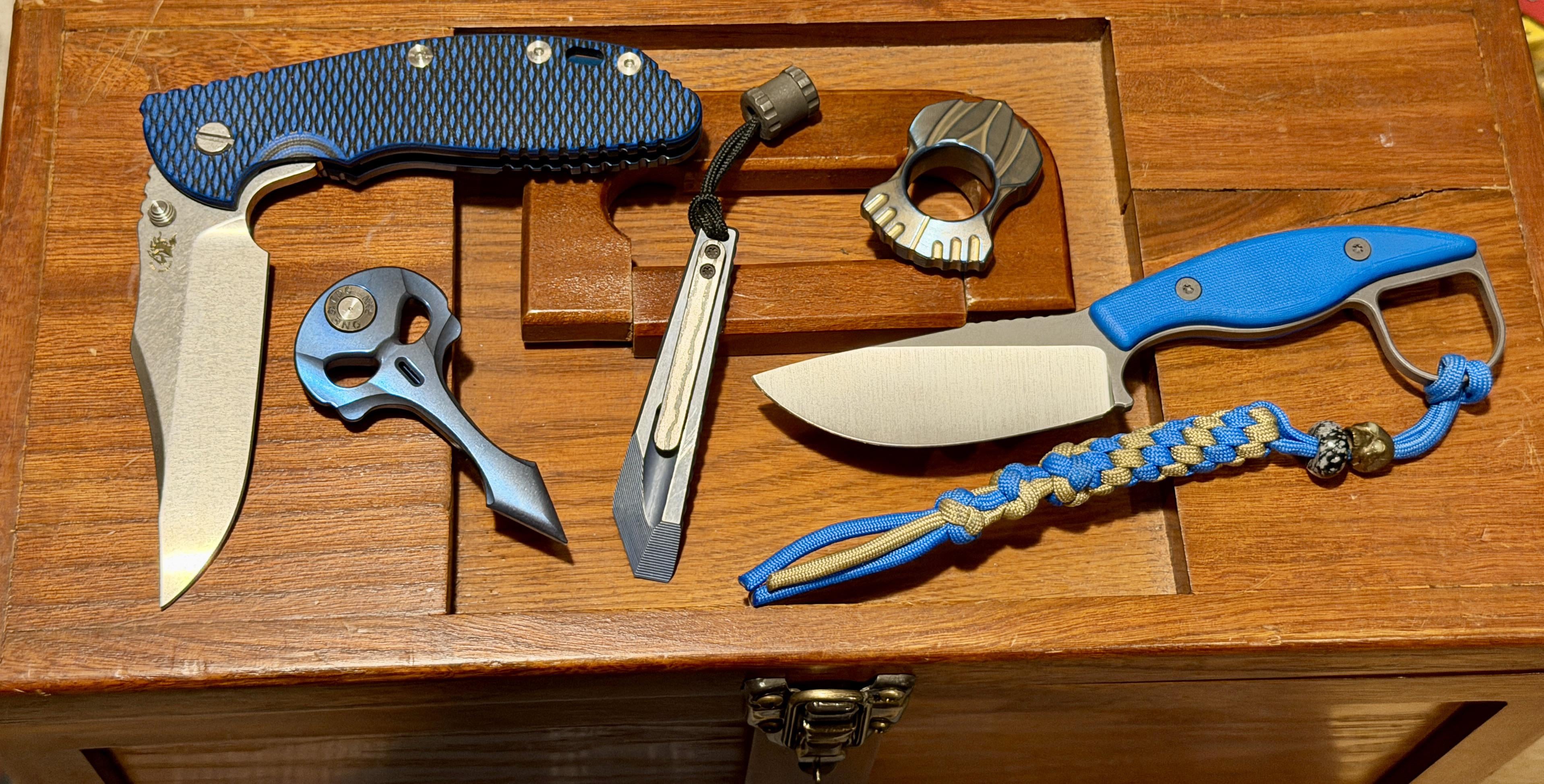 #bluetuesday #tituesday @phoenixtoolworks Impale & Deadbolt @hinderer_knives XM-24 Bowie & some cool pieces from One Studio Have a great day!