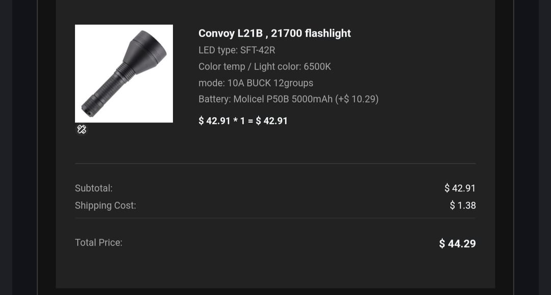I just recently received what I thought was my new L21B SFT42R. I opened it up and quickly realized this isn't what I ordered. the box is labeled as a SFT40 8A 12G instead of the SFT42R 10A 12G. I had also ordered it with a molicel P50B but instead received an EVE 50E?????