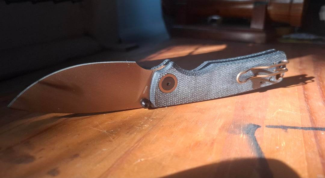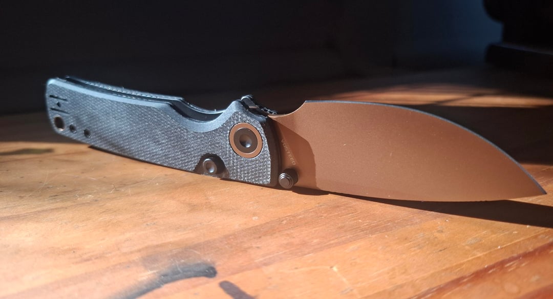 Vosteed Porcupine with the copper dune blade and the black micarta handle. Although it's more brown than copper in person.