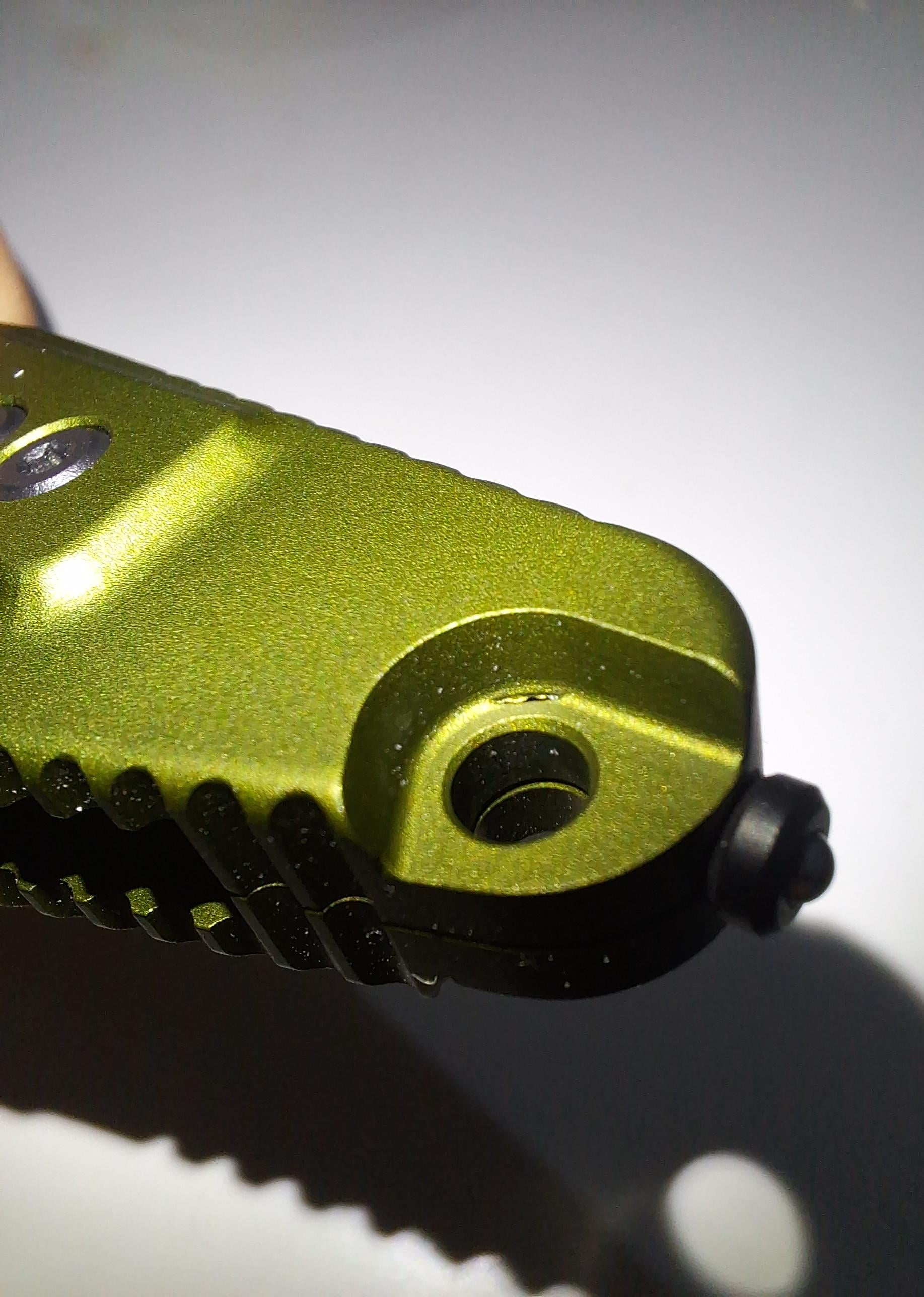 Hard to tell if itās a blemish in the coating or the actual aluminum. Bottom line though, it is a defect. Even if itās just the coating, if itās gonna bother you then return it. No big deal, if BHQ accepts it. If not Iāll bet that Microtech would like to take a look at it.