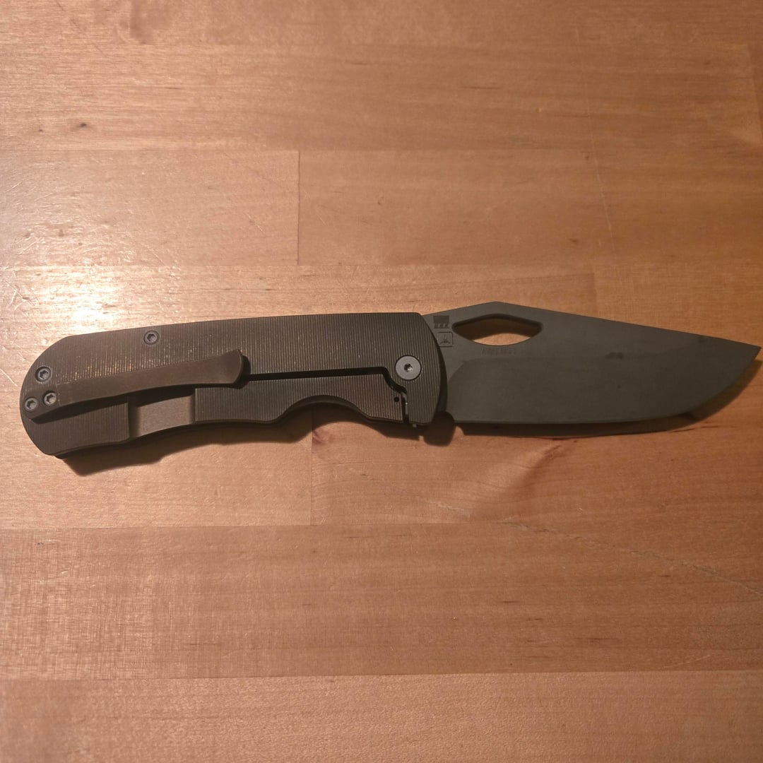 Here I got a McNees dixon which was distressed and custom engraved. Super cool knife, drop shut action, solid lockup, perfect centering.
