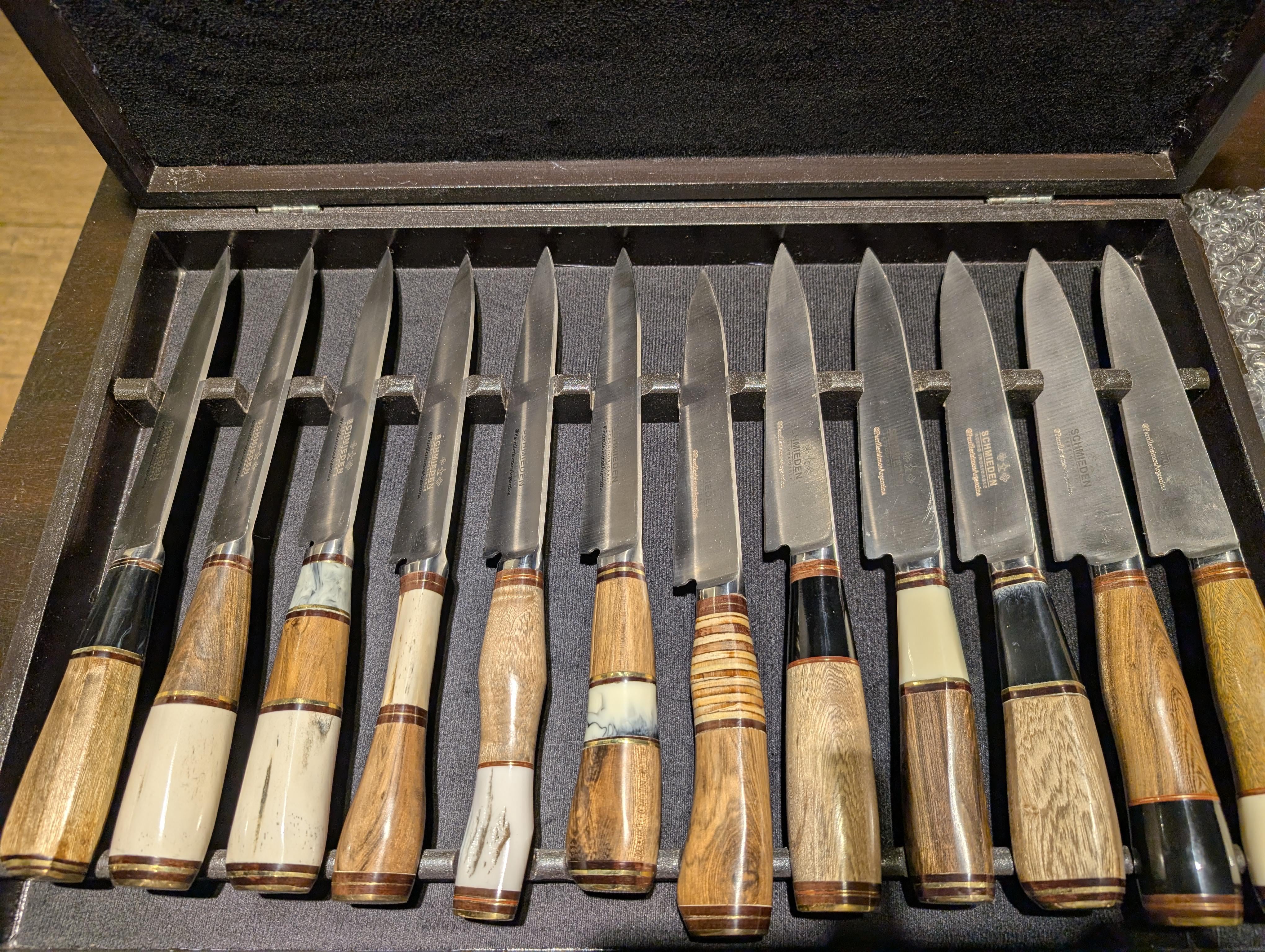 I bought these 12 steak knives and paid about $500 USD. They say Schmieden on them.