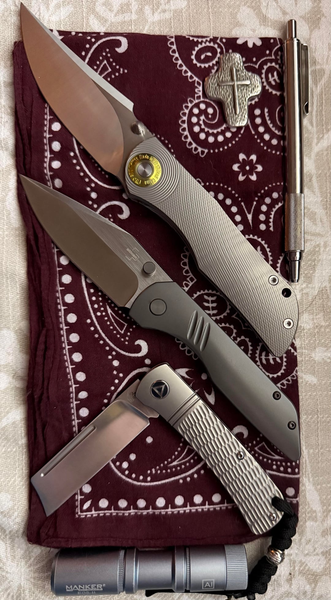 In KNIVES Hello! Whatcha carrying today? February 5, 2026 3 titanium thumpers this Thursday for me; top to bottom:TwoSun — TS269; Boker x Wehr — Max; QSP — Hedgehog.Let’s see what you’re carrying …by OG-BigPapa-KJ KnifeKnives Prev Post Pocket Jewelry Check February 5, 2026 Next Post Edc carry February 5, 2026 Related Posts Every Time February 5, 2026 Call the POLICE! February 5, 2026 Black Thursday February 5, 2026 2 Comments Quiixoticelixer 2 hours ago https://preview.redd.it/g9n8og1tfohg1.jpeg?width=2268&format=pjpg&auto=webp&s=bc0cf2d39a1f52c25fe116983b3fc6e23b23a4b5Chavez Chub flipper and Kizer Clairvoyant today. That TwoSun is quite the looker! callmestinkingwind 2 hours ago https://preview.redd.it/dlf585c4gohg1.jpeg?width=5157&format=pjpg&auto=webp&s=3ca8f18bb590c6a9f2bf83af7b79cd4750e94019dragonfly today.i like the blade on that slip joint. seems like it would be useful.Write A CommentYou must be logged in to post a comment.