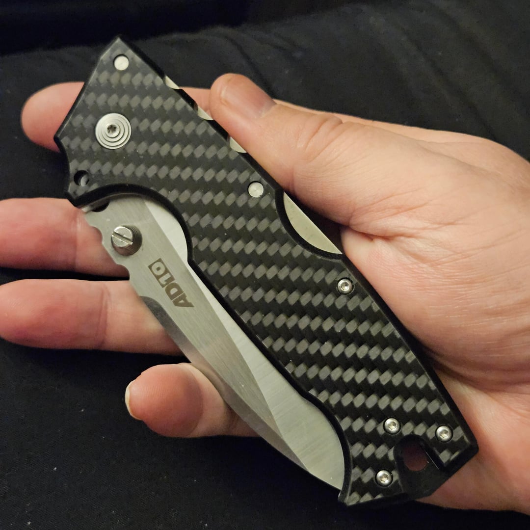 There are a lot of AD10s on ebay right now going for around 50 bucks..with S35vn and g-10 scales. I paid 55 and surprisingly received a version in M390 with carbon fiber scales. Does such a combo even exist? Can't find one online. Knife feels solid, looks good. Seems like an expensive production knife. Here are photos.