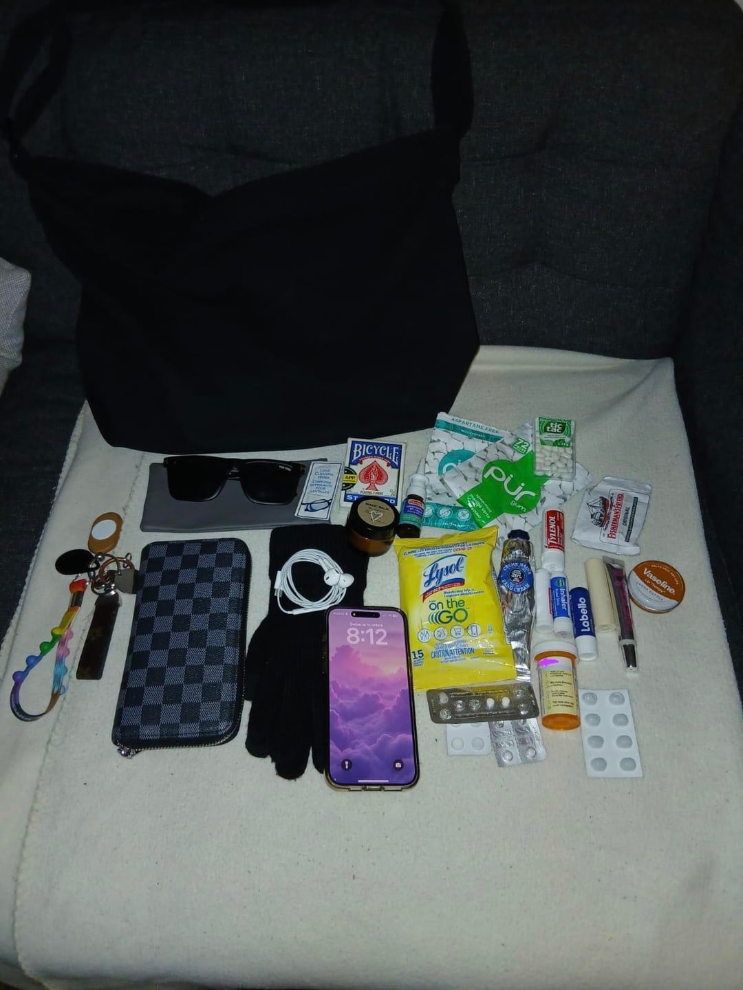 Guess my major .. unpictured : about 3 more lip products and some loose pills in an inner pocket i forgot to open while cleaning my bag March 4, 2026