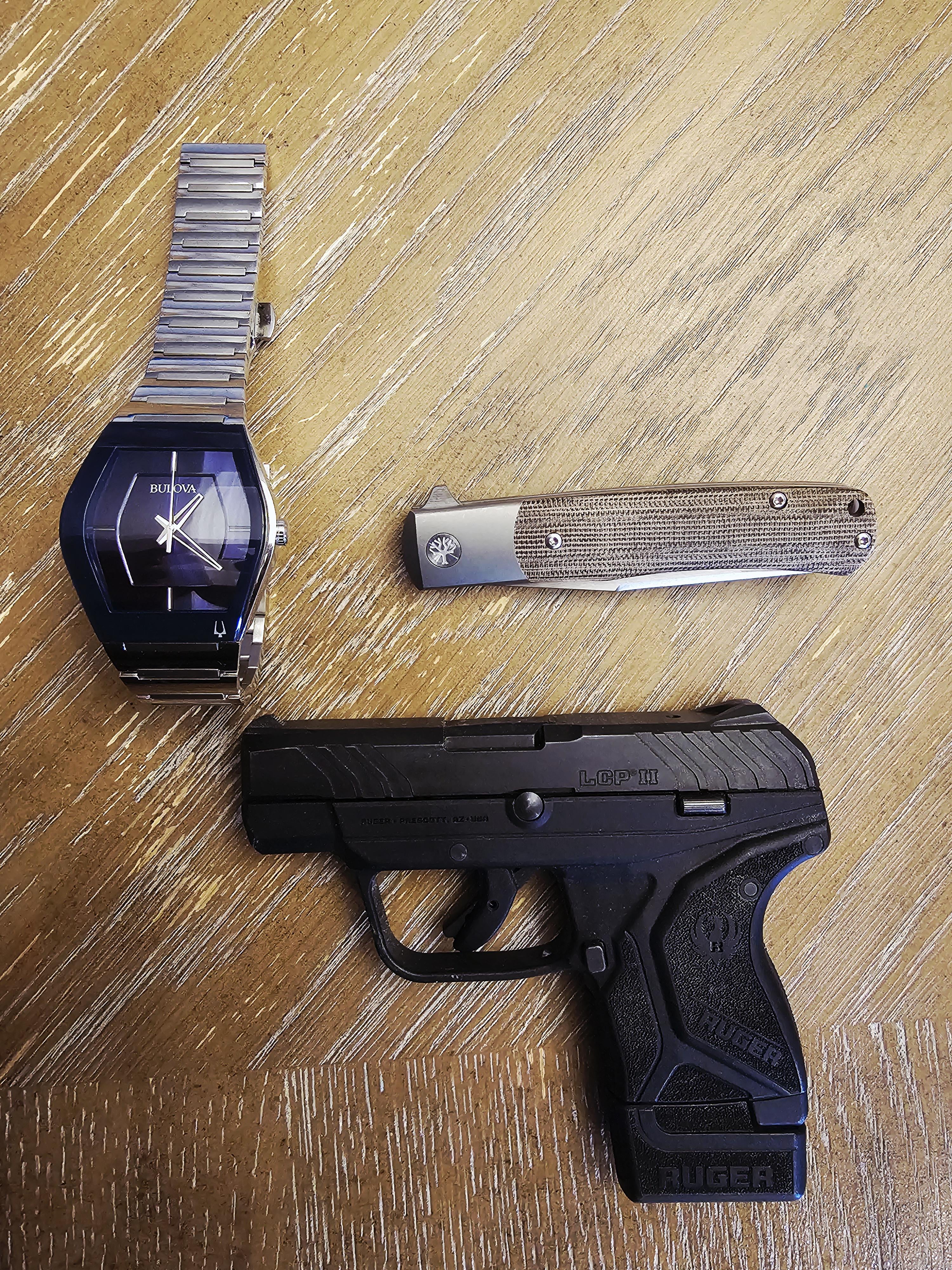 In EDC Simple weekend carry February 7, 2026 Today's light weekend carry Bulova watch Boker trppr pocket knife And a Ruger lcp IIby Captainme2005 EDC Prev Post Reate and Kunwu have been super solid for me thankfully February 7, 2026 Next Post NLD: Overall happy with the design and build on this one. Not my brightest light but does a good job indoors and outside. February 7, 2026 Related Posts All Vacations must come to an end. February 8, 2026 My EDC wallet that I msde February 8, 2026 EDC FOR TODAY February 8, 2026 2 Comments AutoModerator 15 hours ago Thank you for posting to r/EDC! Include a detailed item list (make/model) within **1 hour** of submission. Lists can go in the title, a comment, or the image. Posts without lists will be removed. If you have already provided a list, not further action is needed, thanks | [FAQ](https://www.reddit.com/r/EDC/wiki/faq)*I am a bot, and this action was performed automatically. Please [contact the moderators of this subreddit](/message/compose/?to=/r/EDC) if you have any questions or concerns.* bulldogs47 15 hours ago Nice and simple 👍. Who would downvote?Write A CommentYou must be logged in to post a comment.