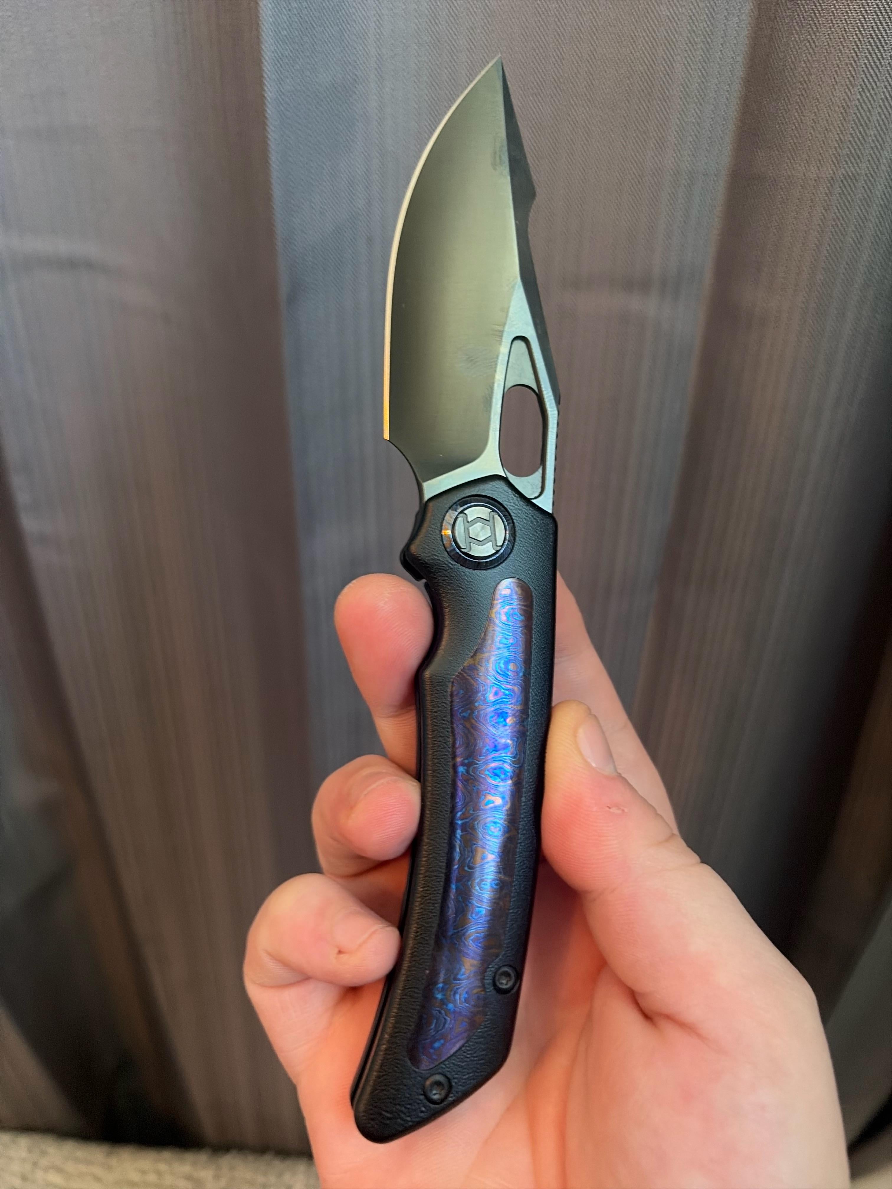 Kunwu Jericho – Egg Shell texture Ti with Timascus inlay / DLC Vanax. Just arrived today and damn it I like it a lot.