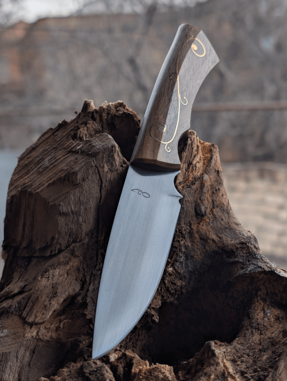Just finished this one. Made of 9KhF, Soviet chromium-vanadium high carbon steel, Handle of Walnut with brass inlay and pins. 58-59 HRC. DM if interested