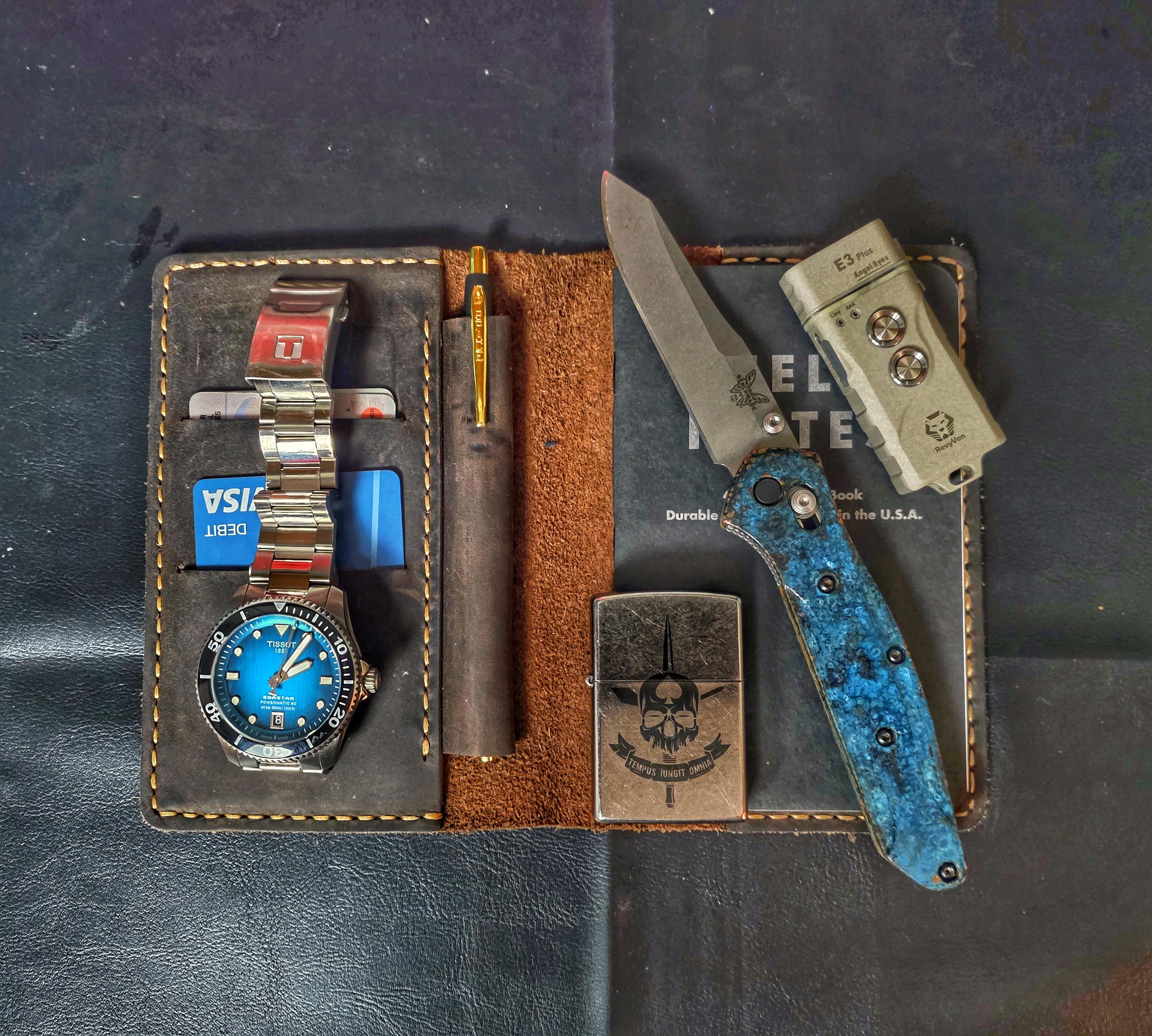 In EDC All Vacations must come to an end. February 8, 2026 Final day of Vacation Carry.Tissot Seastar 1000 40mmFisher Space PenSketchy Boyz Watch Club ZippoBenchmade 940 ShipwreckedRovyvon E3 PlusField Notesby JordanSVail EDC Prev Post Some shots from walk in woods February 8, 2026 Next Post Vintage Schatt&Morgan pocket knife February 8, 2026 Related Posts My EDC wallet that I msde February 8, 2026 EDC FOR TODAY February 8, 2026 Night Out EDC February 8, 2026 1 Comment AutoModerator 2 hours ago Thank you for posting to r/EDC! Include a detailed item list (make/model) within **1 hour** of submission. Lists can go in the title, a comment, or the image. Posts without lists will be removed. If you have already provided a list, not further action is needed, thanks | [FAQ](https://www.reddit.com/r/EDC/wiki/faq)*I am a bot, and this action was performed automatically. Please [contact the moderators of this subreddit](/message/compose/?to=/r/EDC) if you have any questions or concerns.*Write A CommentYou must be logged in to post a comment.
