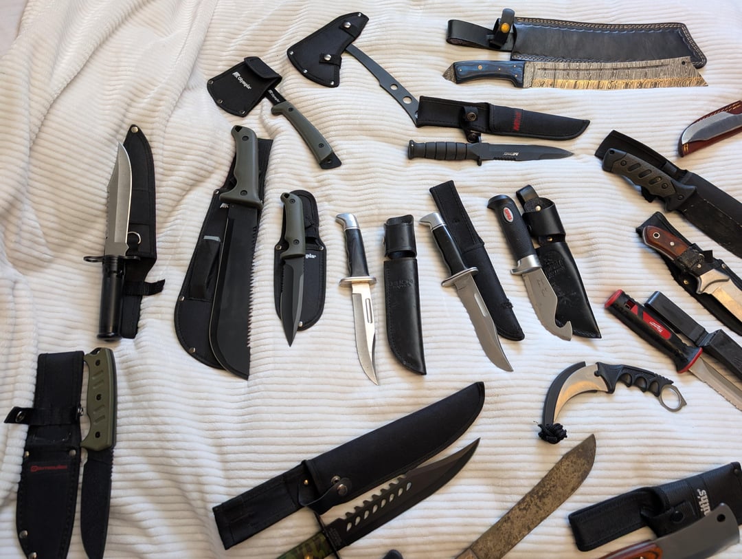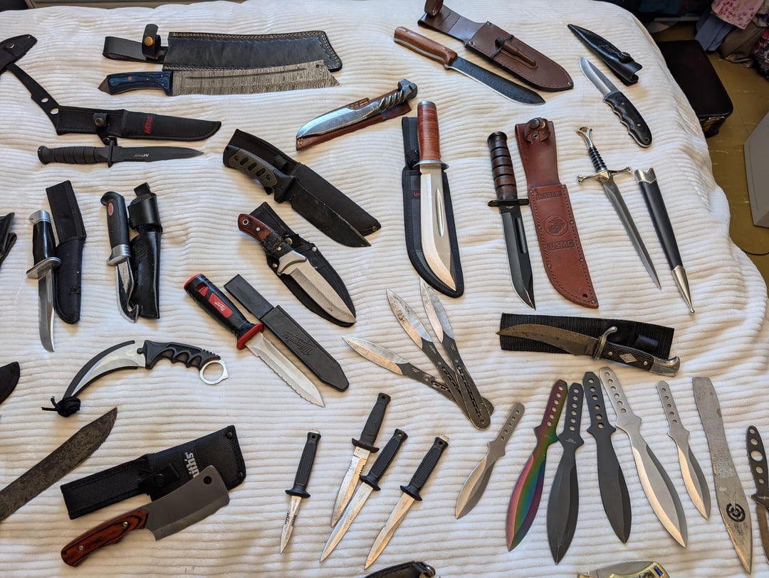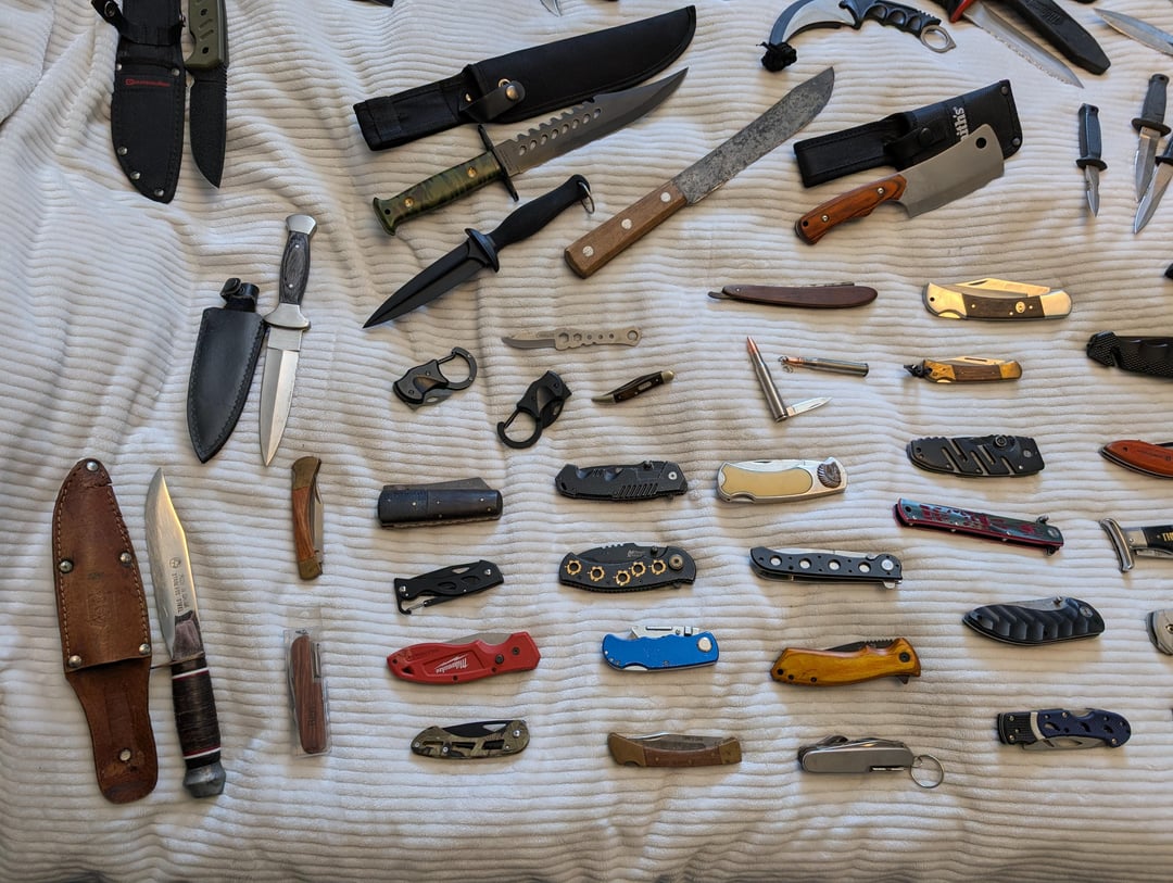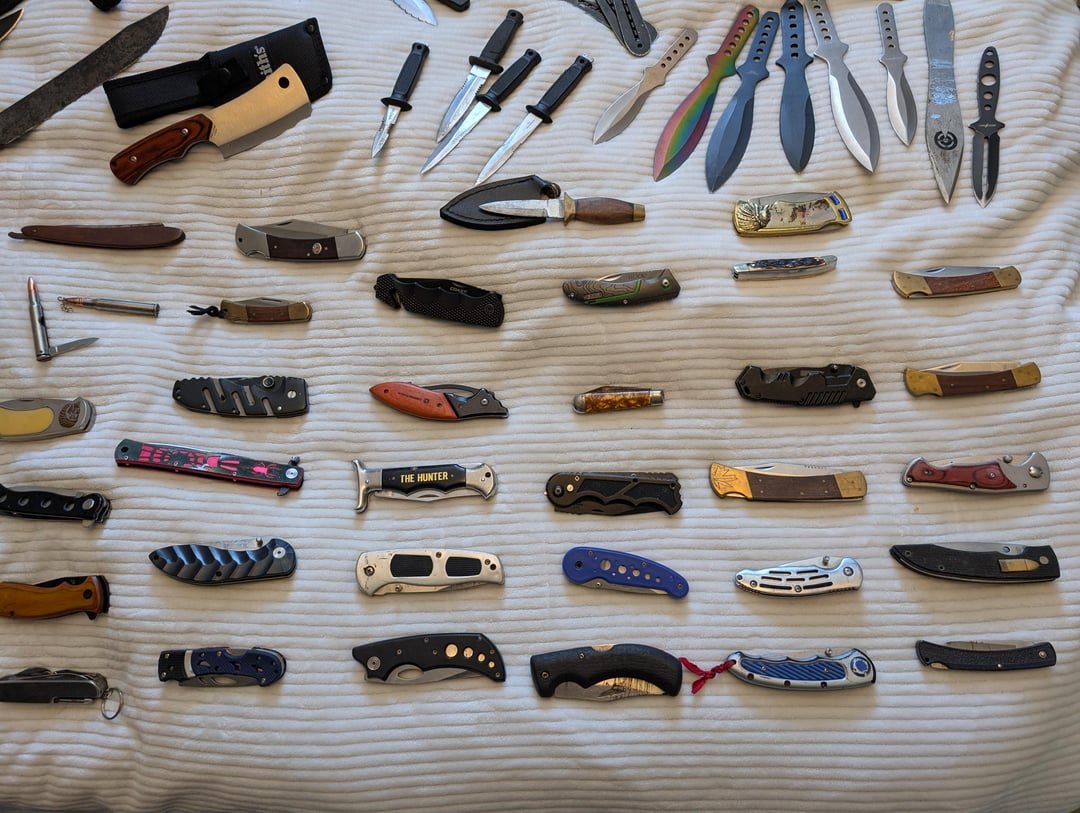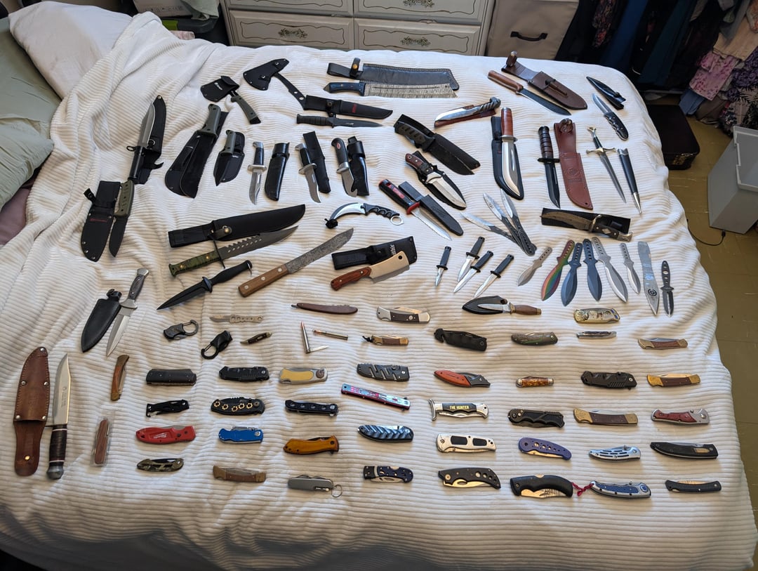 Some of the folders at the bottom are junk that I just don't have the heart to get rid of. I've been collecting for about 25 years. All these knives have a story, and I have more all over the house. Kinda hard to get them all in one place.
