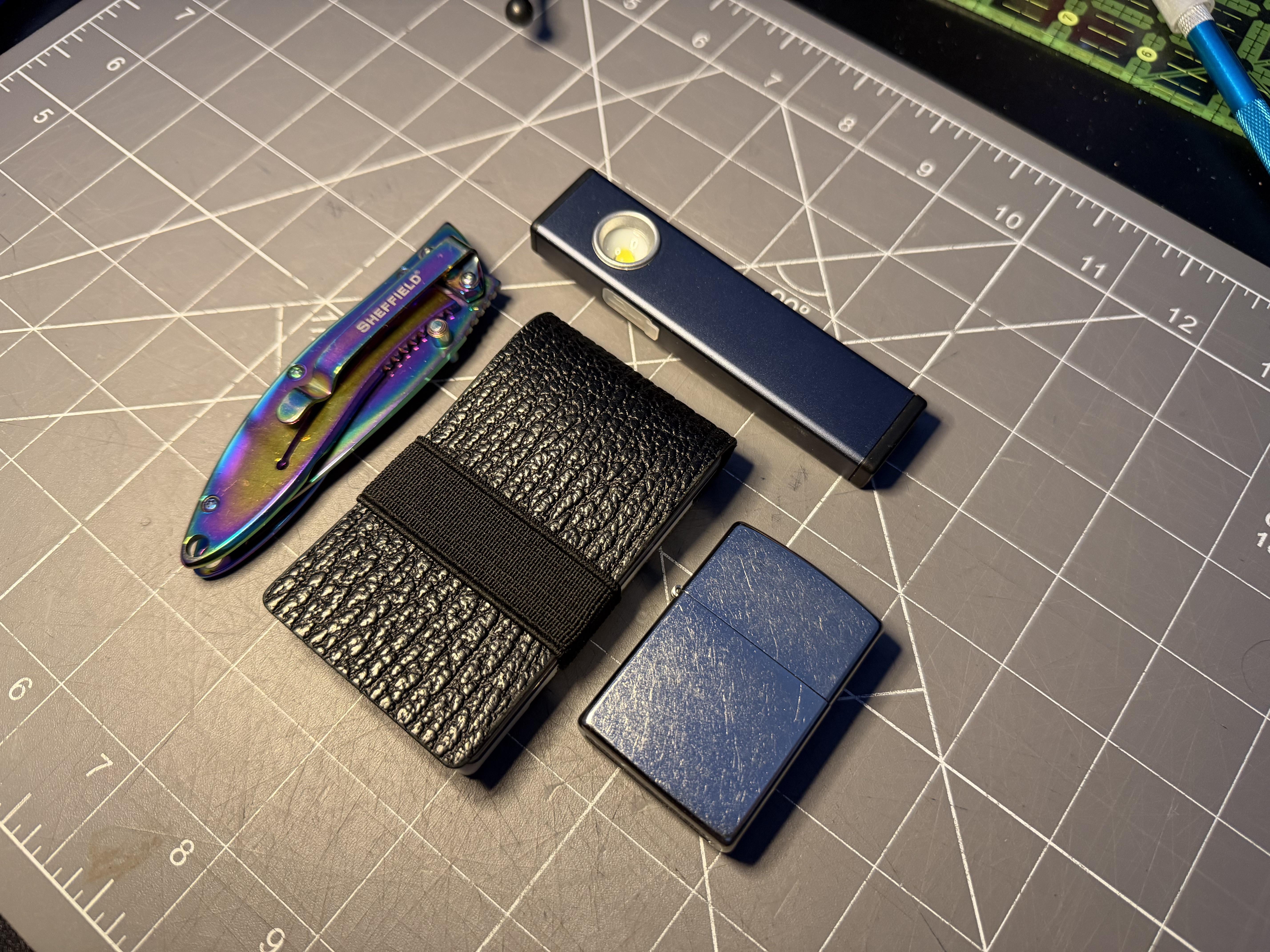 In EDC Today’s loadout February 8, 2026 Sheffield knife Fookin Leather Fold wallet Zippo Amazon light (great buy for 15 bucks I might add) Really digging this shark embossed leather by fookinleatherco EDC Prev Post Gerber Strongarm Magnacut and Prodigy (420hc): Same same…but different…but still same February 8, 2026 Next Post Just another Sunday EDC February 8, 2026 Related Posts My first EDC post April 24, 2026 Guess my job April 24, 2026 Don’t sleep on the Ryobi doorknob installation driver April 24, 2026 1 Comment AutoModerator 3 months ago Thank you for posting to r/EDC! Include a detailed item list (make/model) within **1 hour** of submission. Lists can go in the title, a comment, or the image. Posts without lists will be removed. If you have already provided a list, not further action is needed, thanks! [Rules](https://www.reddit.com/r/EDC/wiki/rules) | [FAQ](https://www.reddit.com/r/EDC/wiki/faq) *I am a bot, and this action was performed automatically. Please [contact the moderators of this subreddit](/message/compose/?to=/r/EDC) if you have any questions or concerns.* Write A CommentYou must be logged in to post a comment.