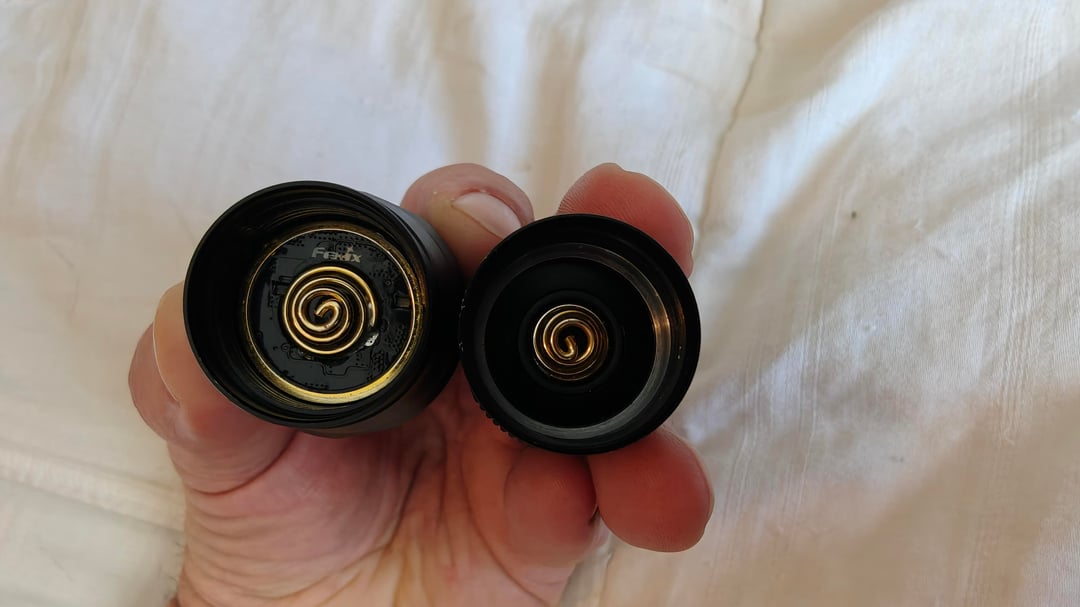 I was out walking with my family and was lucky enough to find this Fenix TK16 on the ground in the middle of the street. It didn't turn on so I took it home to see if it just needed new batteries. I've never seen a battery with a USB C built in. When I plugged it in to see if it just needed to be charged; it's green; as seen in the photo. The Fenix website shows it should be red and turn blue when charged. So question 1 is what does green mean? In the troubleshooting section it recommended to clean the contact points with either an eraser on a pencil or isopropyl alcohol. I did both. Still doesn't work. All the components look clean if not shiny new (see photos). Any ideas? Or did I discover why it was in the middle of the road?