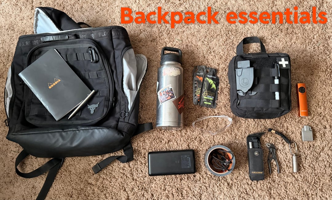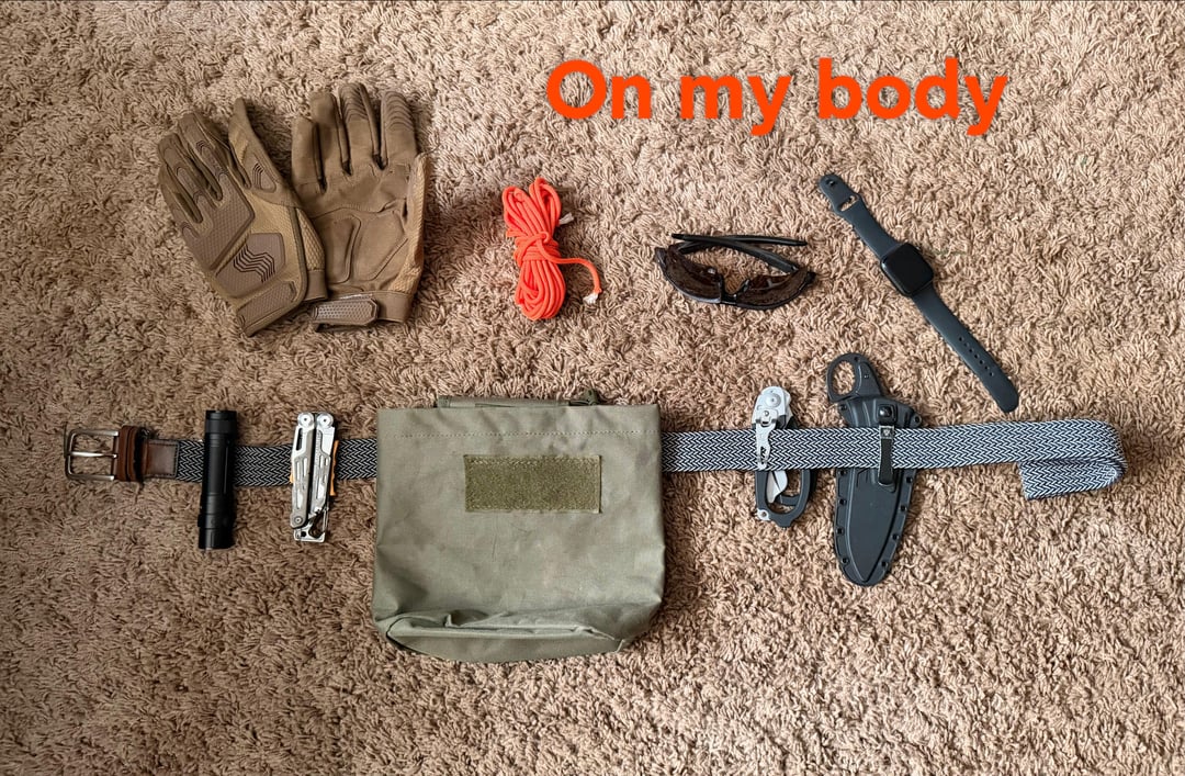 The only extras that I choose to carry are the Signal, bit kit, and mini channel locks. Everything else is required, and I’m actually missing some things that go in my bag. Also looking for light recommendations that’ll just be a bottom-switch version of the Fenix, and a better fixed blade.