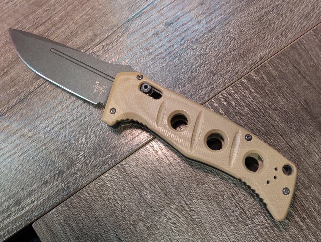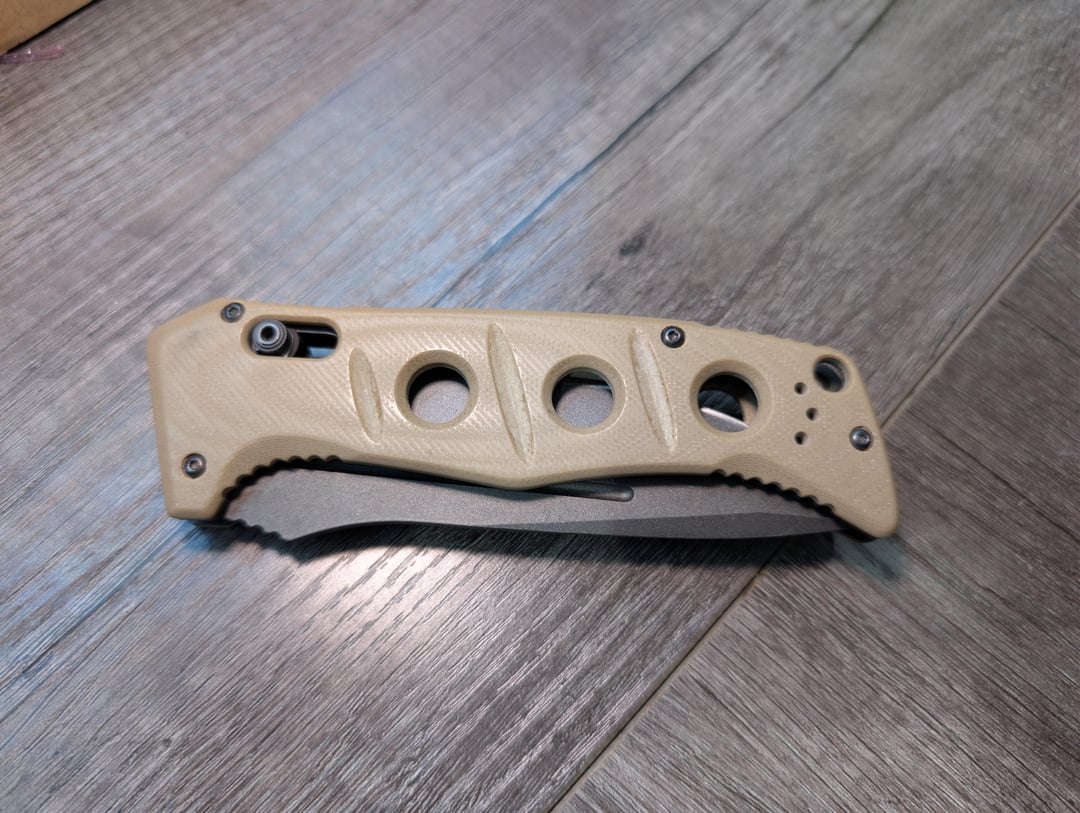 This is my Benchmade Auto Adamas with fresh new aluminum scales from Applied Weapons Technologies. Boy it looks so much better this way. Definitely elevates this knife. These are before and after, thoughts?