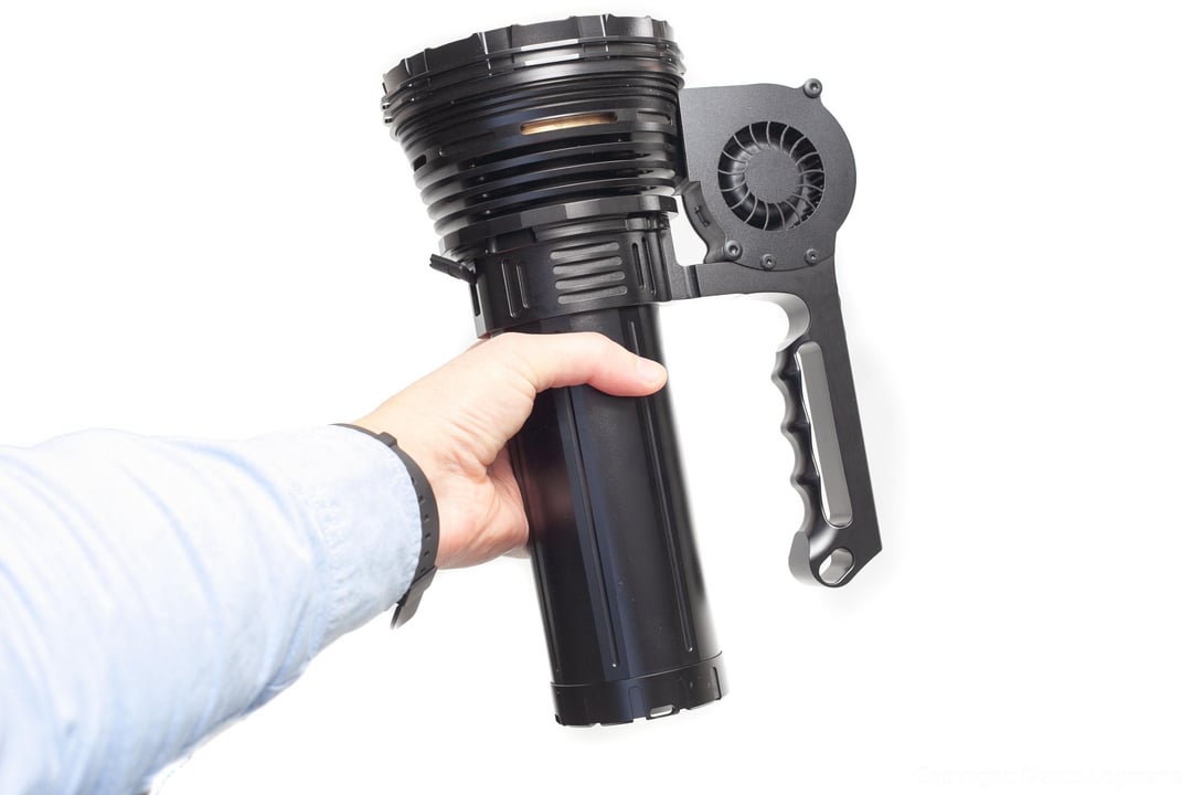 The output drops like a rock in every mode, and runs below 10,000 lumens for the rest of its runtime. That’s a downside for such a big light. The output could clearly be higher, especially in the lower modes. And the fan should have been controlled by the temperature instead of by mode.. Good example is the Imalent MS18 with similar problem.
