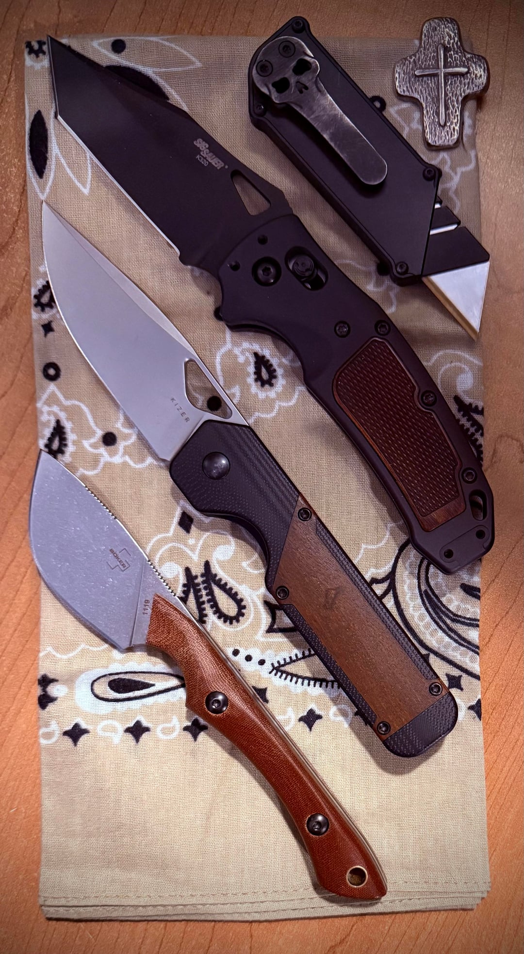 In KNIVES TGIF!! Time for the weekly Fri-yay Carries Check … February 13, 2026 Mine, Top to Bottom:Chaves — Chub Slipper; Houge x Sig Sauer — K320 (NKD, long-time grail); Kizer — Militaw; Boker — MUK.Those are my Friday carries … now how about yours?by OG-BigPapa-KJ KnifeKnives Prev Post NKD Esee Izula and UltiClip February 13, 2026 Next Post Suggestions… February 13, 2026 Related Posts Eklipse Bowie February 13, 2026 Vintage knife id please February 13, 2026 Happy Friday the 13th what are you carrying today? February 13, 2026 2 Comments Quiixoticelixer 2 hours ago https://preview.redd.it/bk5ltmslq9jg1.jpeg?width=3072&format=pjpg&auto=webp&s=49bf6725bc26d5778ac3ddf7910c1a35f8e7cb7eChavez Chub flipper and Mini Sheepdog today! I’ve been wanting to get my hands on a MUK, they look so nice callmestinkingwind 2 hours ago https://preview.redd.it/63vw7k70r9jg1.jpeg?width=3556&format=pjpg&auto=webp&s=9c376d0059f3c7fc6f54df77436c5c318b32cbc70566cf todayWrite A CommentYou must be logged in to post a comment.