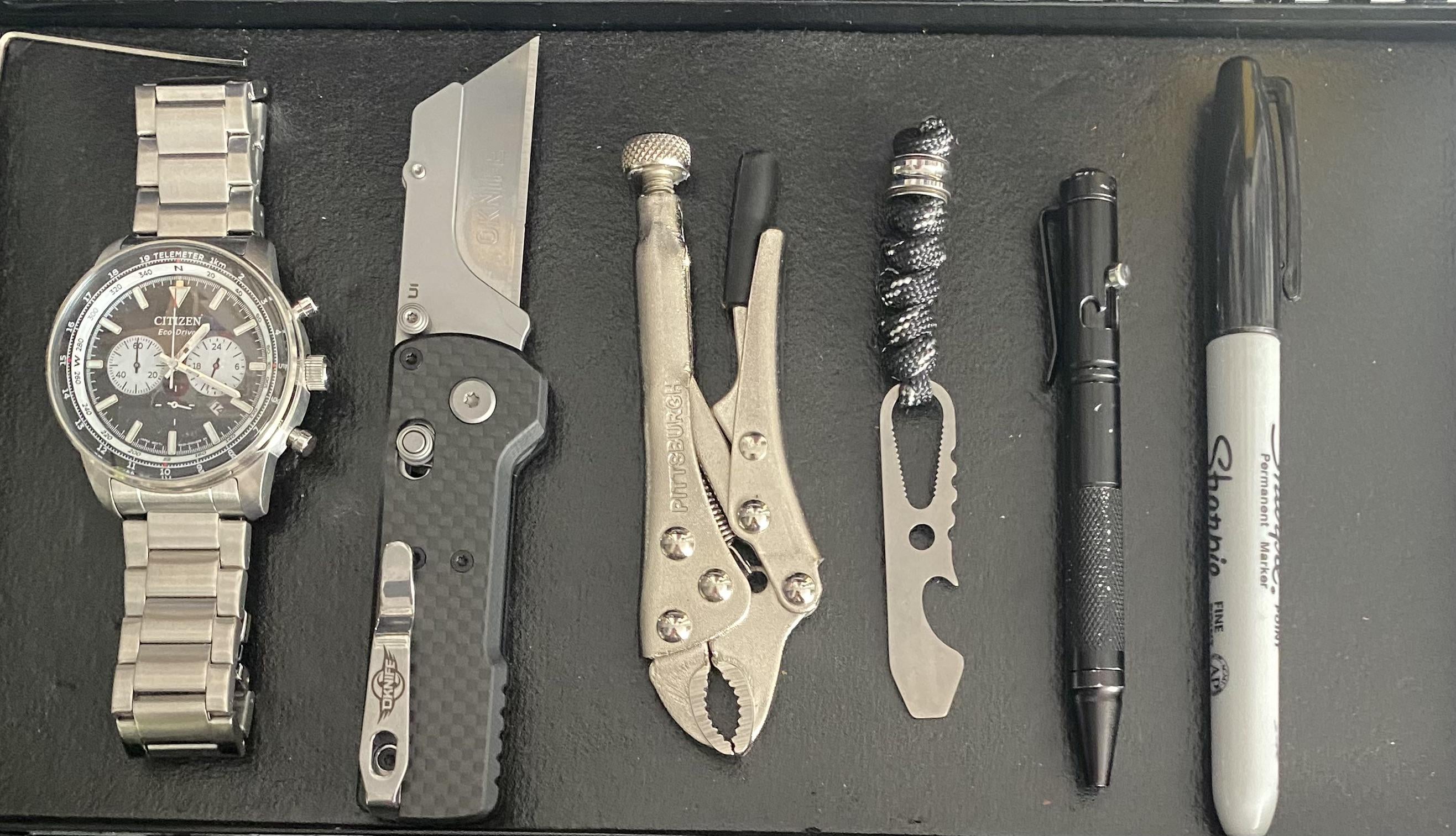 In EDC Today edc February 14, 2026 Citizen eco drive chronographOknife u1 comes with the pry barMini Pliers from harbor freightChinese bolt action pen from AmazonSharpie from mijersby casiofartshiter EDC Prev Post Camp carry for the weekend. CruCarta pm2 February 14, 2026 Next Post Burned hole in my pants February 14, 2026 Related Posts Dad | 33 | Pulling a ‘02 k1200LT Fuel Pump February 14, 2026 My everyday February 14, 2026 Stealthy February 14, 2026 1 Comment AutoModerator 5 hours ago Thank you for posting to r/EDC! Include a detailed item list (make/model) within **1 hour** of submission. Lists can go in the title, a comment, or the image. Posts without lists will be removed. If you have already provided a list, not further action is needed, thanks | [FAQ](https://www.reddit.com/r/EDC/wiki/faq)*I am a bot, and this action was performed automatically. Please [contact the moderators of this subreddit](/message/compose/?to=/r/EDC) if you have any questions or concerns.*Write A CommentYou must be logged in to post a comment.